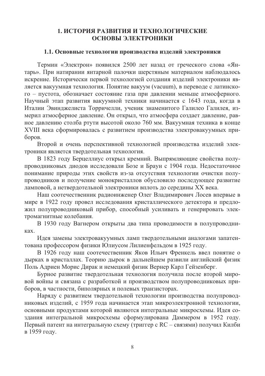 Рассматриваются история и технологические основы электроники, свойства химических элементов и их соединений, основные технологические процессы микро- и наноэлектроники, основные виды нанотехнологий и их изделий, а также нанотехнологическое оборудование.