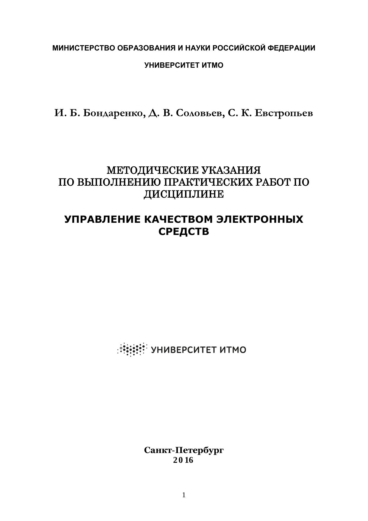Методические указания по выполнению практических работ по дисциплине "Управление качеством электронных средств"