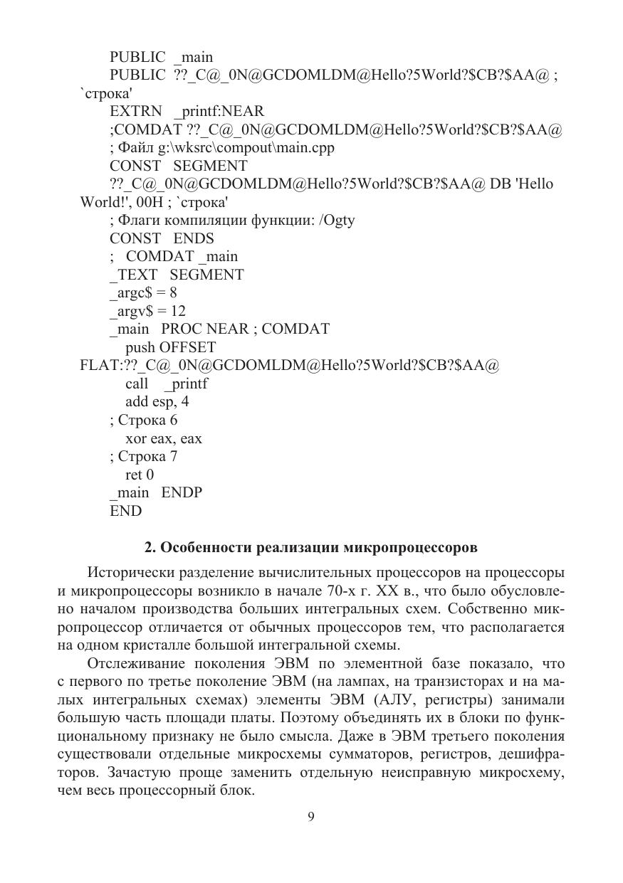 Рассмотрены проблемы низкоуровневых языков программирования. Приведены ключевые характеристики и технические особенности микропроцессоров. Показана система команд языка assembler.