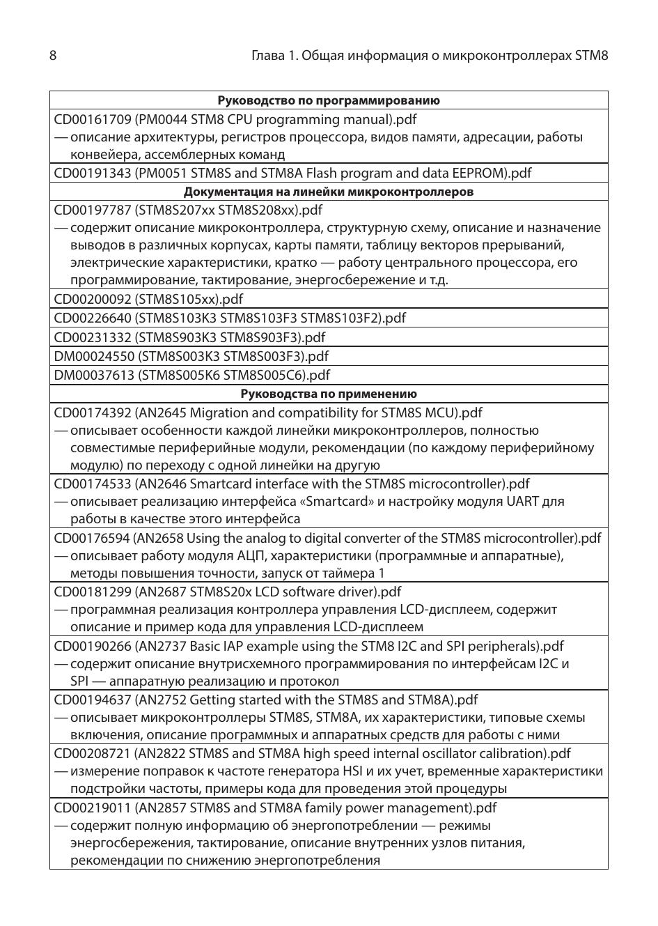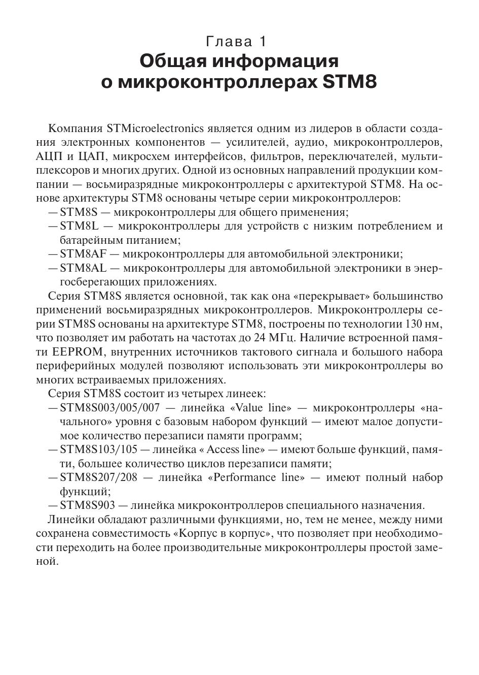 Эта книга предназначена для разработчиков электронной аппаратуры, планирующих начать работать с микроконтроллерами серии STM8S и любителей, увлекающихся созданием устройств на микроконтроллерах. Книга содержит описание микроконтроллера серии STM8S: описание работы периферийных модулей и их регистров, описание видов памяти, битов конфигурации, систем прерываний, энергосбережения, тактирования и других.