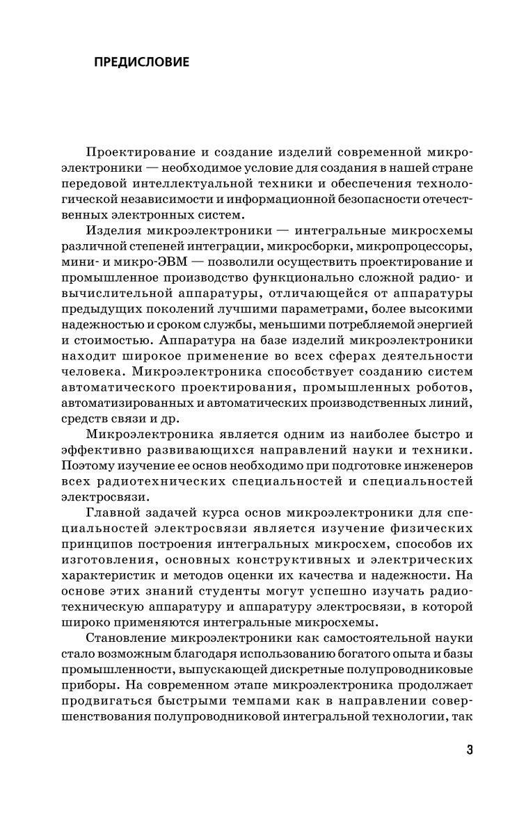 В учебнике изложены основные направления развития микроэлектроники: рассмотрены физические основы, конструкция, технология, структурные элементы и аспекты проектирования интегральных микросхем (ИМС) и больших интегральных схем (БИС). Рассмотрены отдельные технологические процессы, схемотехнические решения, машинные методы проектирования и изготовления изделий микроэлектроники. Учебник предназначен для студентов технических вузов и университетов, изучающих микроэлектронику.