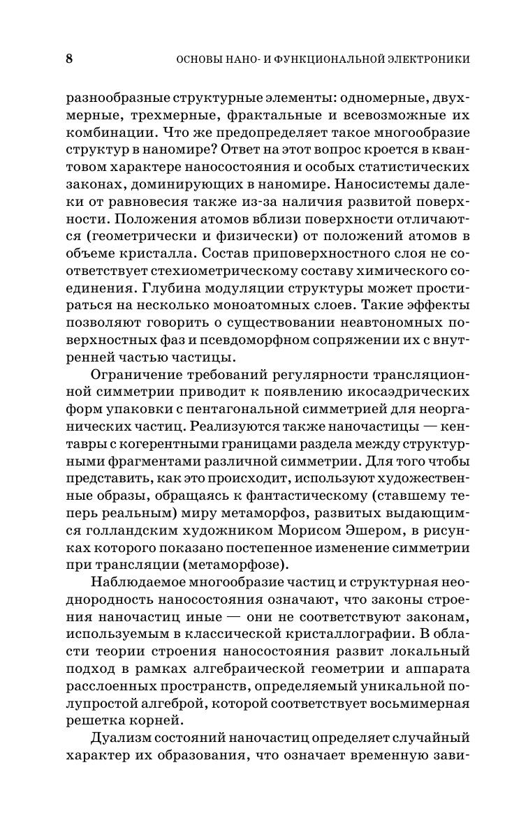 В книге изложены историческая справка физики становления и развития наноэлектроники, физические основы наноструктур и приборов наноэлектроники, физические и микросистемные основы построения элементной базы приборов и устройств направлений развития функциональной электроники (акустоэлектроники, диэлектрической электроники, полупроводниковой электроники, магнитоэлектроники, оптоэлектроники, молекулярной электроники). Пособие содержит контрольные вопросы, задачи с решениями и списки рекомендуемой литературы для углубленного изучения материала. Предназначено для подготовки бакалавров, магистров и специалистов направлений: «Электроэнергетика и электротехника», «Электроника и наноэлектроника», «Радиотехника», «Информационные технологии и системы связи», «Конструирование технологии и микросистемная техника».