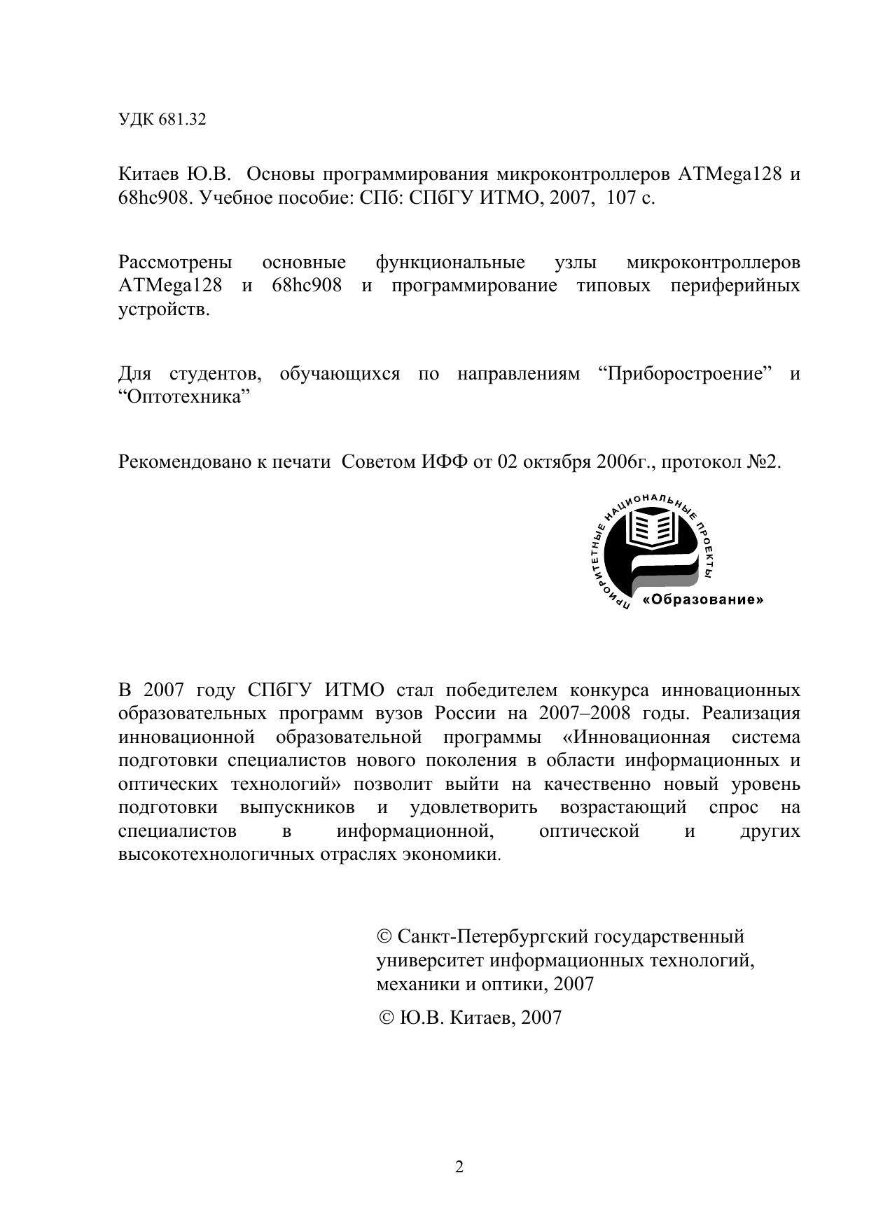 Основы программирования микроконтроллеров ATMega128 и 68hc908