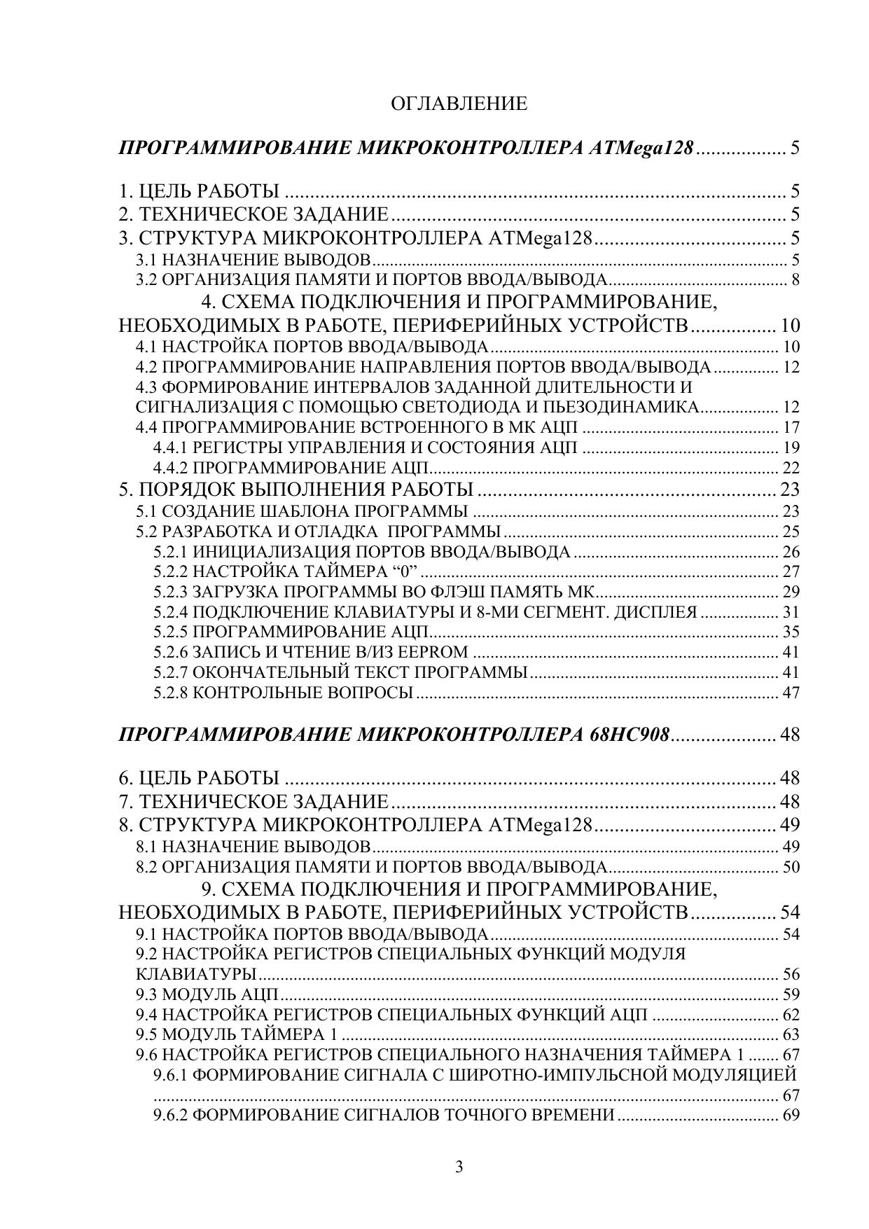 Рассмотрены основные функциональные узлы микроконтроллеров ATMega128 и 68hc908 и программирование типовых периферийных устройств.