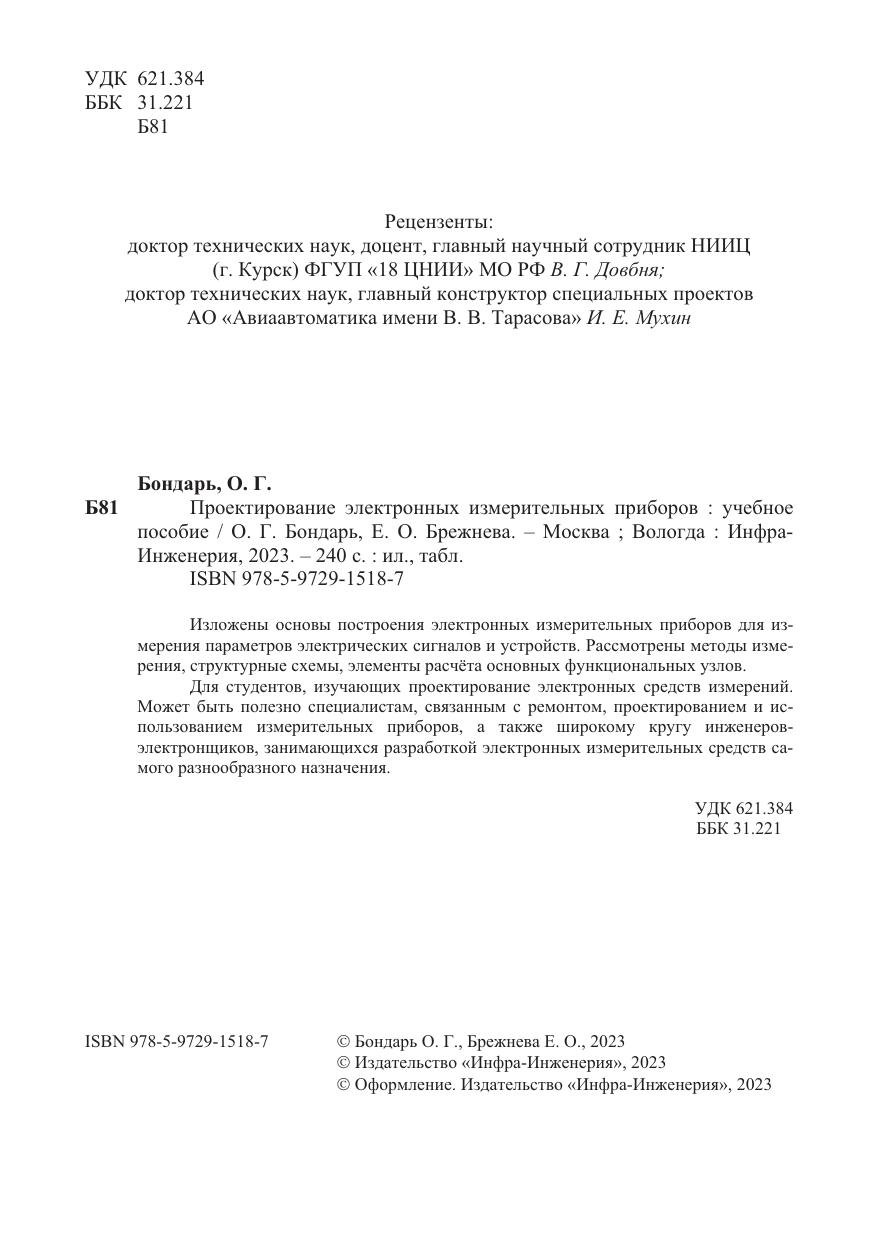 Для студентов, изучающих проектирование электронных средств измерений. Может быть полезно специалистам, связанным с ремонтом, проектированием и использованием измерительных приборов, а также широкому кругу инженеров-электронщиков, занимающихся разработкой электронных измерительных средств самого разнообразного назначения.