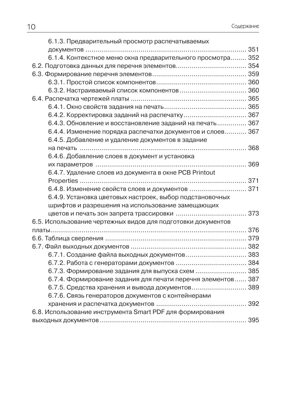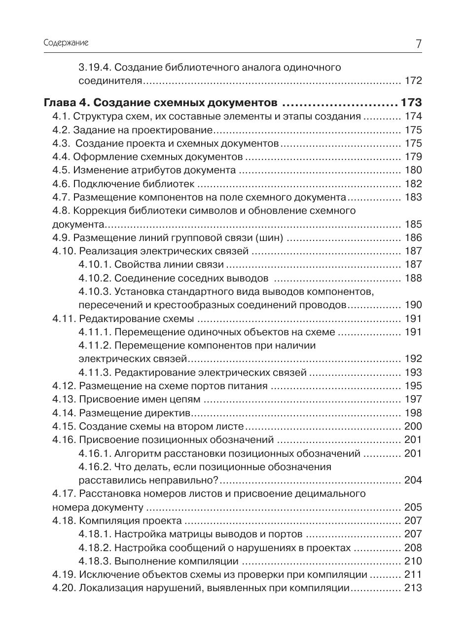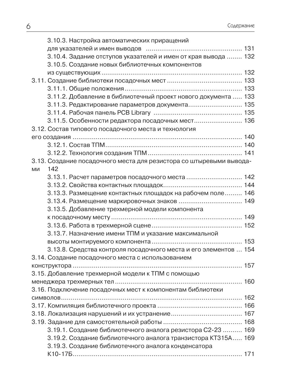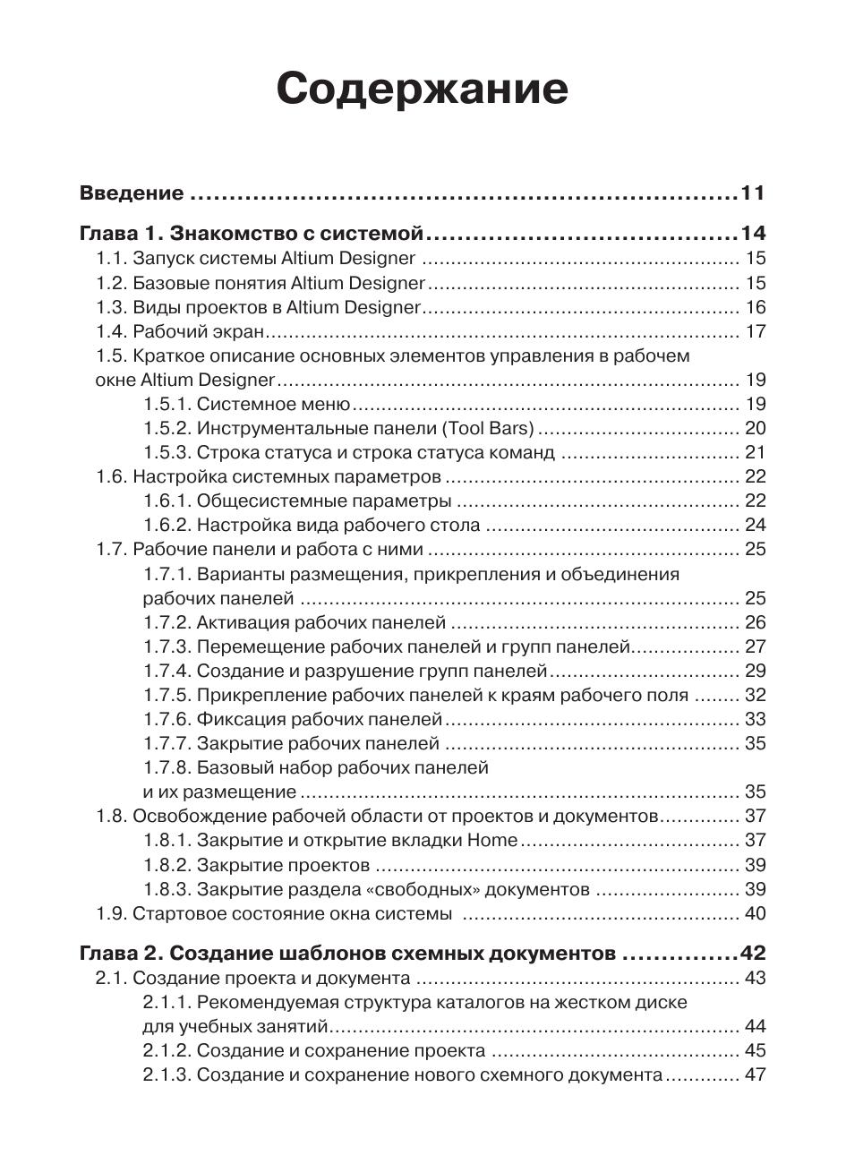 На примере несложного устройства рассмотрены практические приемы проектирования печатных плат в системе Altium Designer. Очень подробно с применением пошаговых инструкций описывается весь цикл проектирования печатной платы – от ввода схемы до верификации проекта и выпуска рабочей документации. Рассматриваются инструменты автоматической и интерактивной трассировки, размещения и редактирования полигонов, задания и проверки конструкторско-технологических норм. Большое внимание уделено созданию и ведению библиотек, включающих все известные разновидности электронных компонентов. Рассмотрена методика создания шаблонов конструкторских документов, облегчающих работу по выпуску рабочей документации. Книга может быть полезна для разработчиков электронной аппаратуры и студентов технических вузов, начинающих осваивать систему Altium Designer.