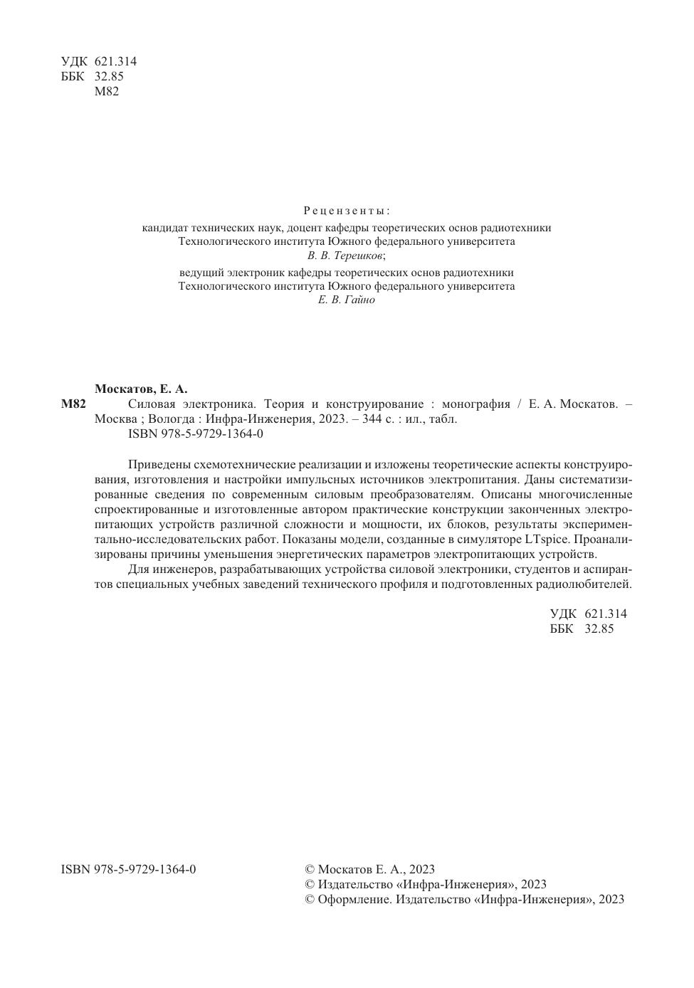 Для инженеров, разрабатывающих устройства силовой электроники, студентов и аспирантов специальных учебных заведений технического профиля и подготовленных радиолюбителей.