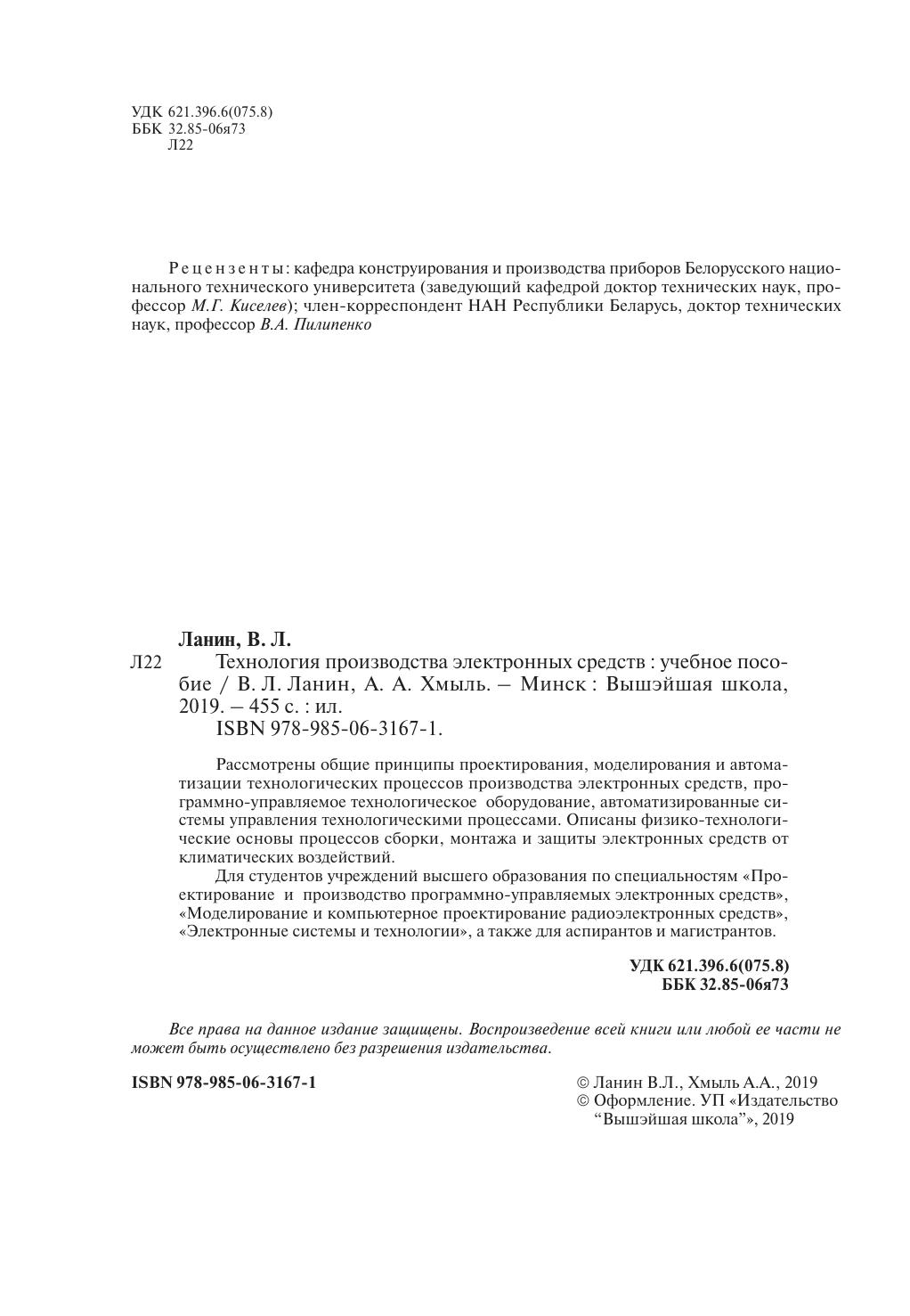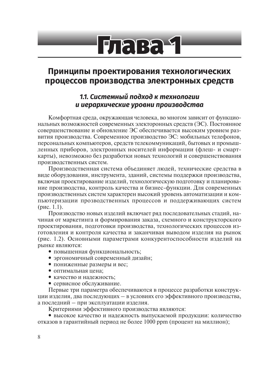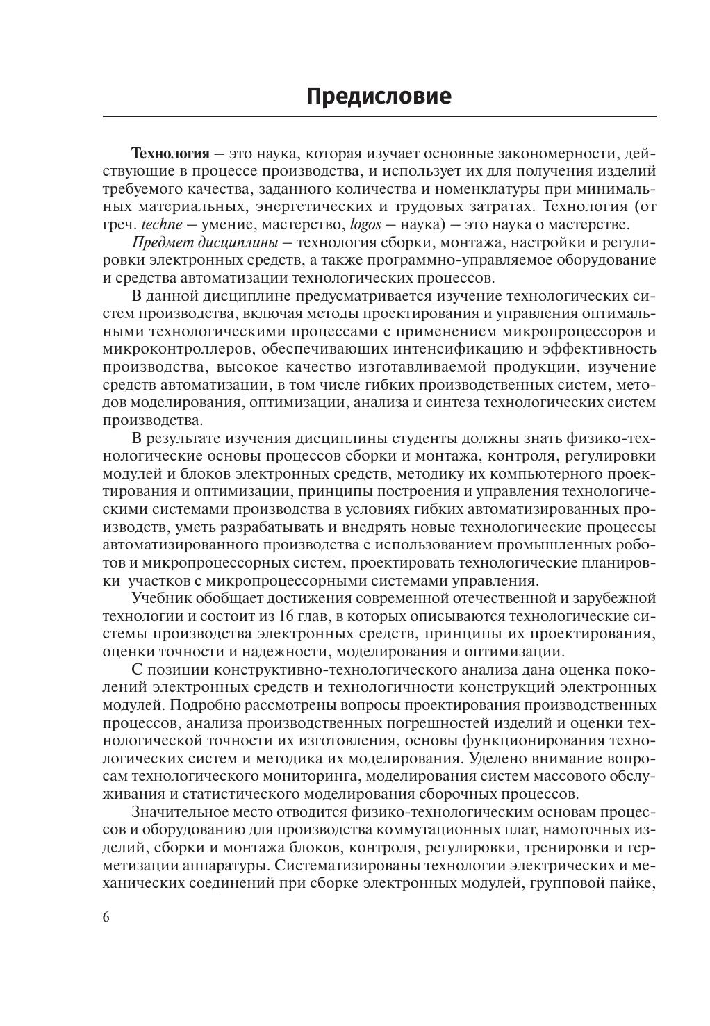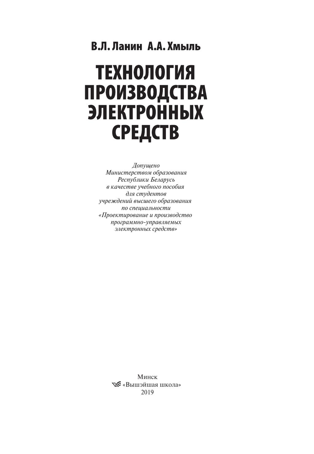 Рассмотрены общие принципы проектирования, моделирования и автоматизации технологических процессов производства электронных средств, программно-управляемое технологическое оборудование, автоматизированные системы управления технологическими процессами. Описаны физико-технологические основы процессов сборки, монтажа и защиты электронных средств от климатических воздействий. Для студентов учреждений высшего образования по специальностям «Проектирование и производство программно-управляемых электронных средств», «Моделирование и компьютерное проектирование радиоэлектронных средств», «Электронные системы и технологии», а также для аспирантов и магистрантов.