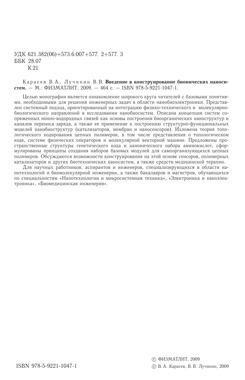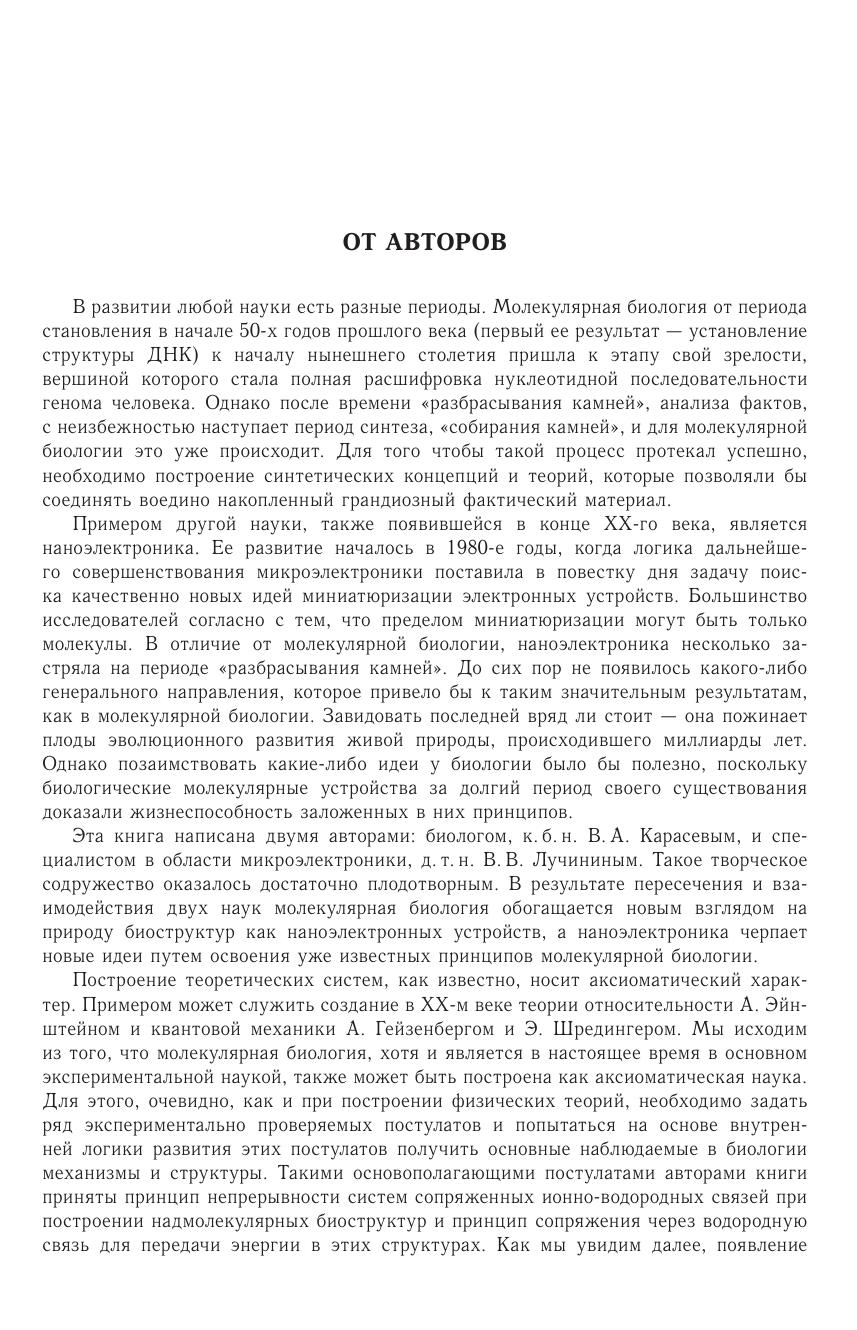 Целью монографии является ознакомление широкого круга читателей с базовыми понятиями, необходимыми для решения инженерных задач в области нанобиоэлектроники. Представлен системный подход, ориентированный на интеграцию физико-технического и молекулярно-биологического направлений в исследовании нанобиосистем. Описана концепция систем сопряженных ионно-водородных связей как основы построения биоорганических наноструктур и каналов переноса заряда, а также ее применение к построению структурно-функциональных моделей нанобиоструктур (катализаторов, мембран и наносенсоров). Изложена теория топологического кодирования цепных полимеров, в том числе представления о топологическом коде, системе физических операторов и молекулярной векторной машине. Предложены пространственные структуры генетического кода и канонического набора аминокислот, сформулированы принципы создания наборов базовых модулей для самоорганизующихся цепных полимеров. Обсуждаются возможности конструирования на этой основе сенсоров, полимерных катализаторов и других биотехнических наносистем, а также средств медицинской терапии.Для научных работников, аспирантов и инженеров, специализирующихся в области нанотехнологий и биомолекулярной инженерии, а также бакалавров и магистров, обучающихся по специальностям «Нанотехнологии и микросистемная техника», «Электроника и наноэлектроника», «Биомедицинская инженерия».