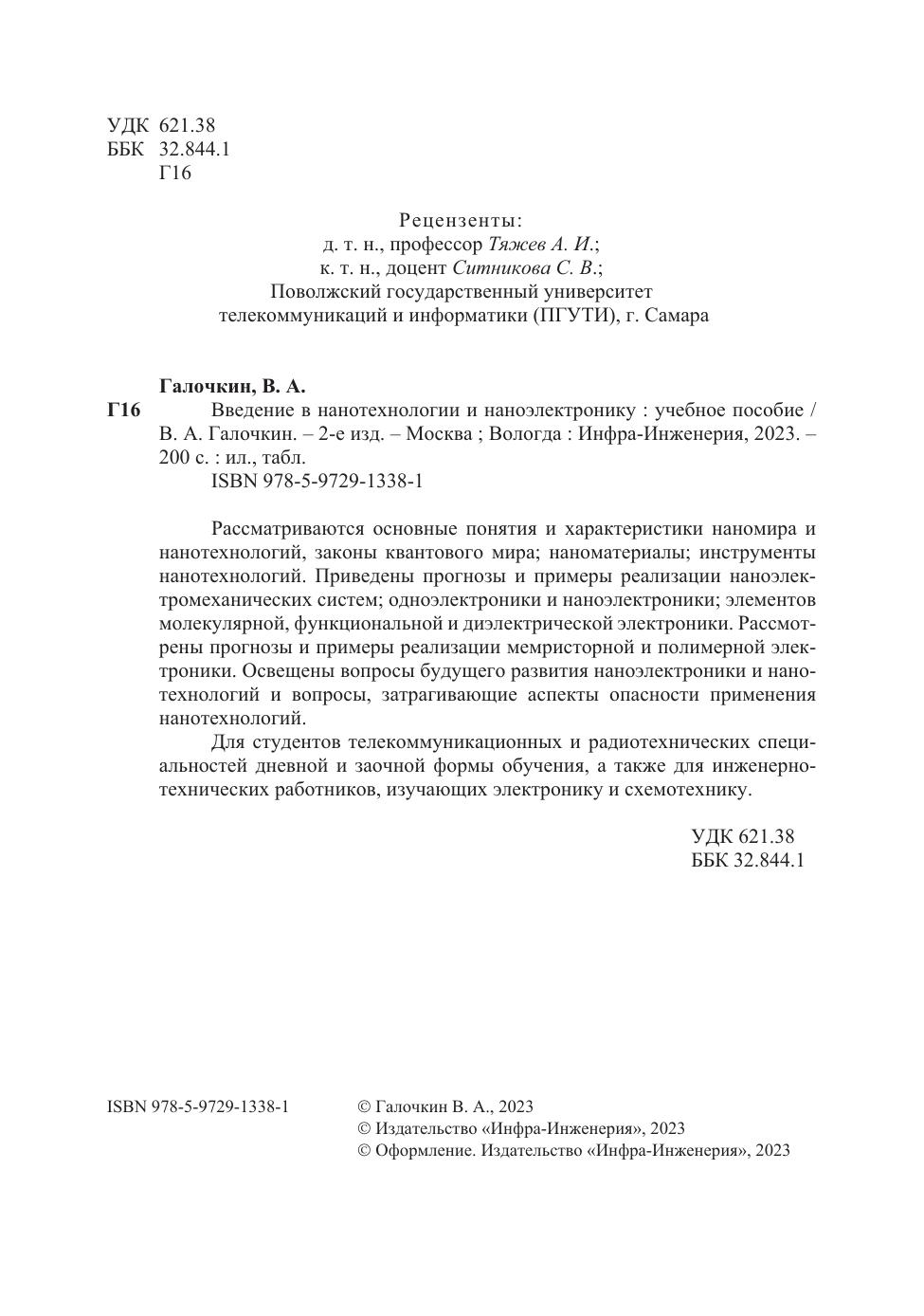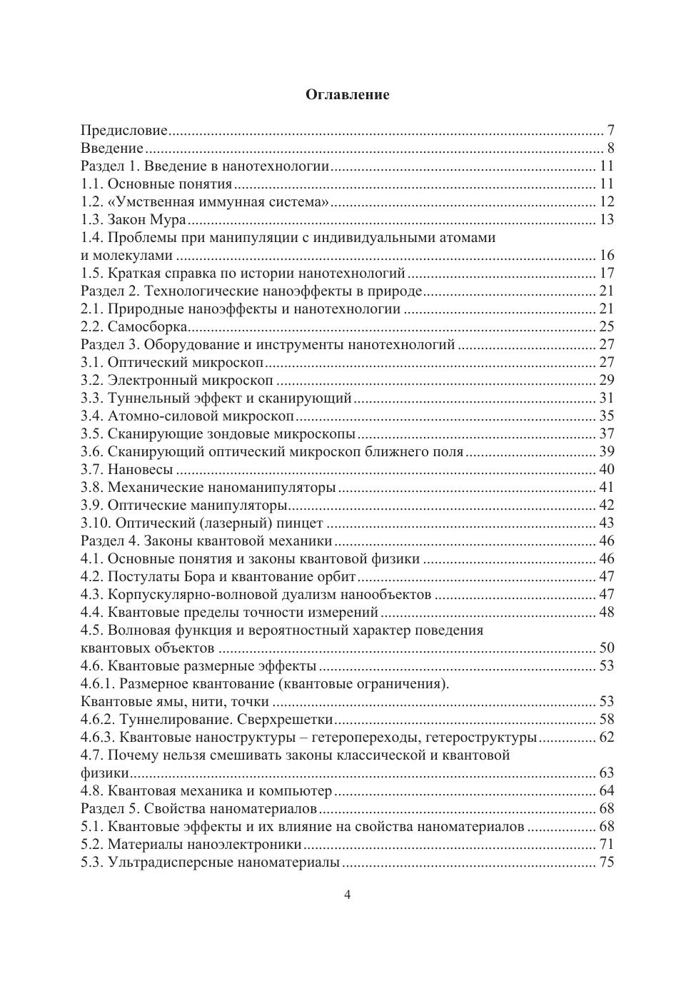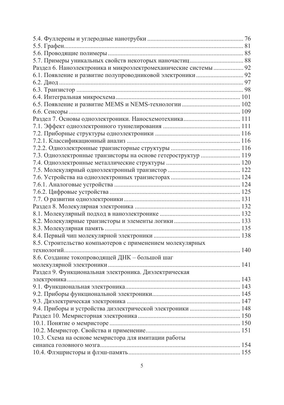 Рассматриваются основные понятия и характеристики наномира и нанотехнологий, законы квантового мира; наноматериалы; инструменты нанотехнологий. Приведены прогнозы и примеры реализации наноэлектромеханических систем; одноэлектроники и наноэлектроники; элементов молекулярной, функциональной и диэлектрической электроники. Рассмотрены прогнозы и примеры реализации мемристорной и полимерной электроники. Освещены вопросы будущего развития наноэлектроники и нанотехнологий и вопросы, затрагивающие аспекты опасности применения нанотехнологий.
