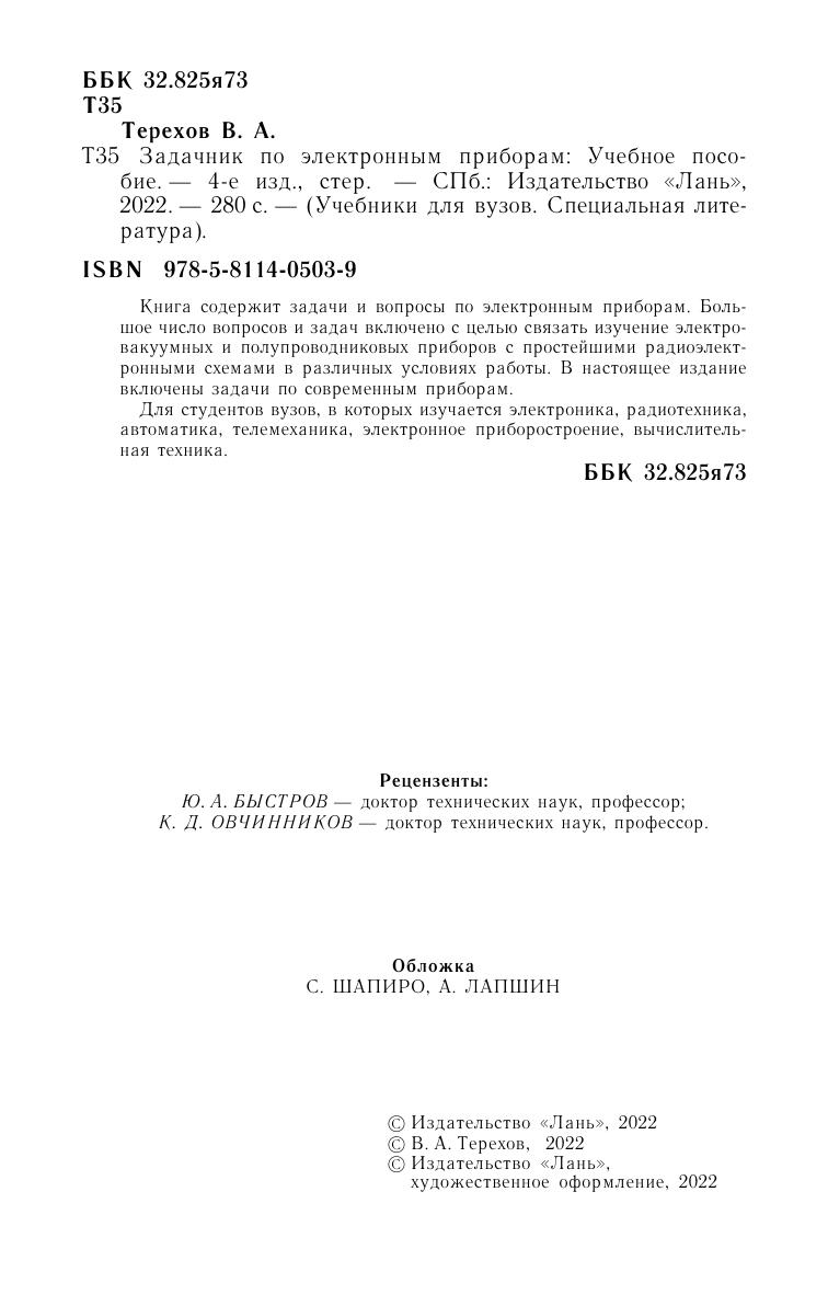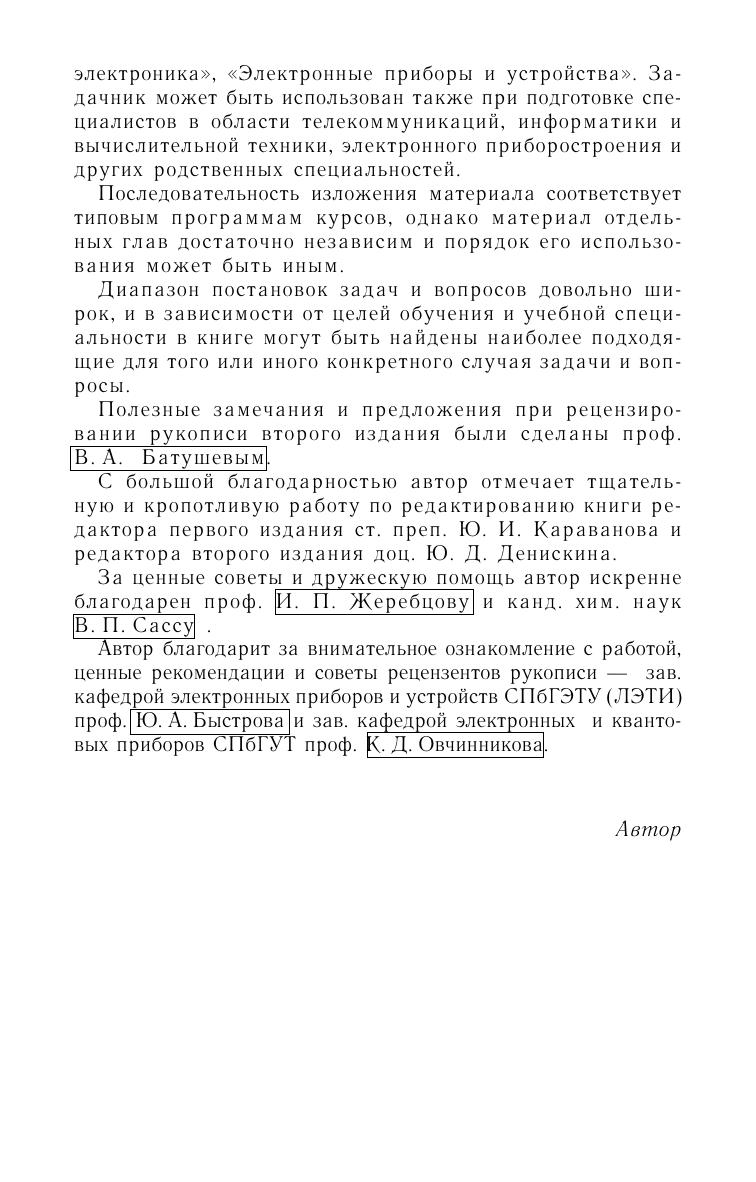 Книга содержит задачи и вопросы по электронным приборам. Большое число вопросов и задач включено с целью связать изучение электровакуумных и полупроводниковых приборов с простейшими радиоэлектронными схемами в различных условиях работы. В настоящее издание включены задачи по современным приборам. Для студентов вузов, в которых изучается электроника, радиотехника, автоматика, телемеханика, электронное приборостроение, вычислительная техника.