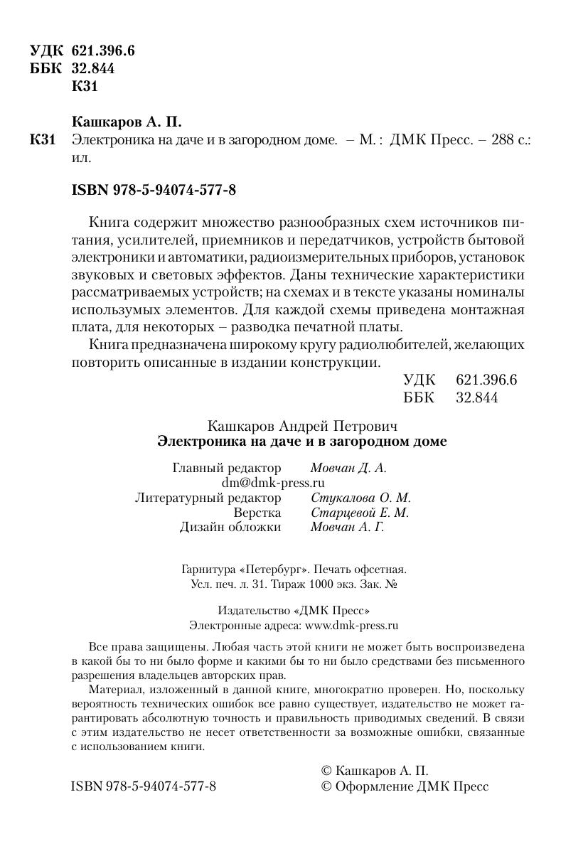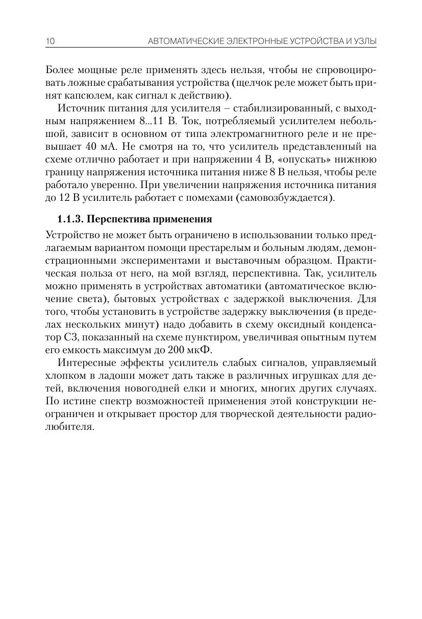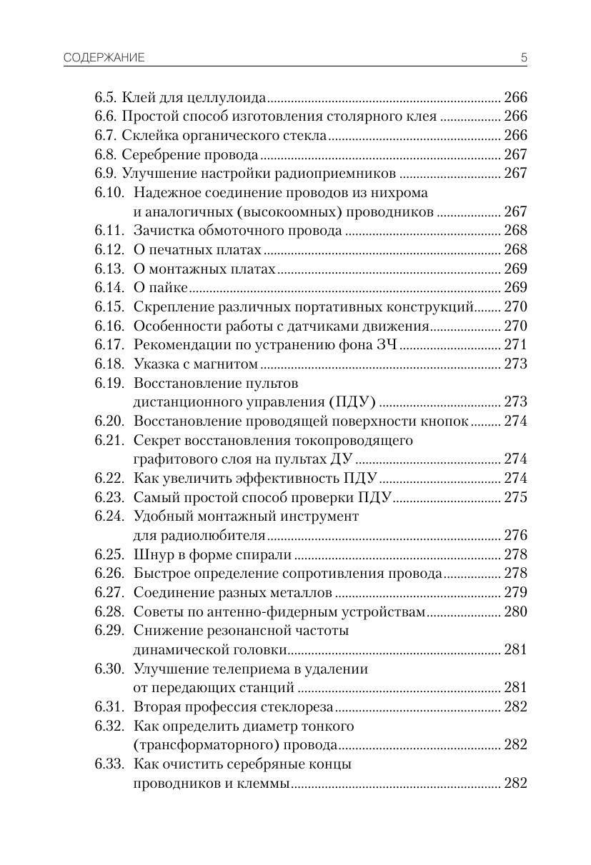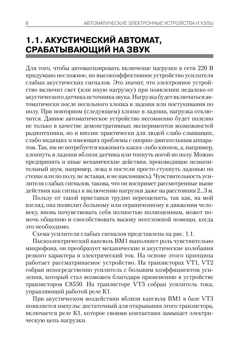 Книга содержит множество разнообразных схем источников питания, усилителей, приемников и передатчиков, устройств бытовой электроники и автоматики, радиоизмерительных приборов, установок звуковых и световых эффектов. Даны технические характеристики рассматриваемых устройств, на схемах и в тексте указаны номиналы использумых элементов. Для каждой схемы приведена монтажная плата, для некоторых – разводка печатной платы. Книга предназначена широкому кругу радиолюбителей, желающих повторить описанные в издании конструкции.