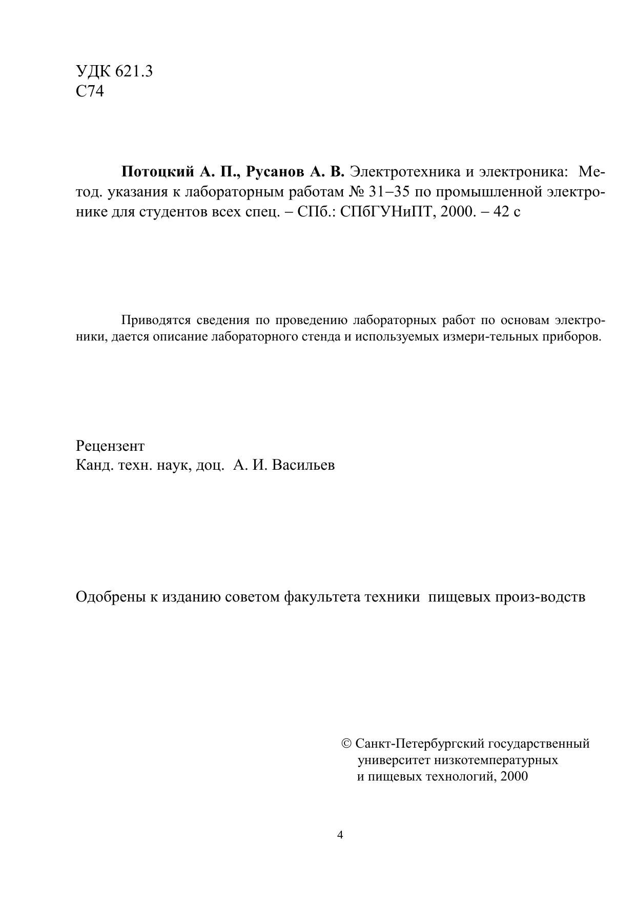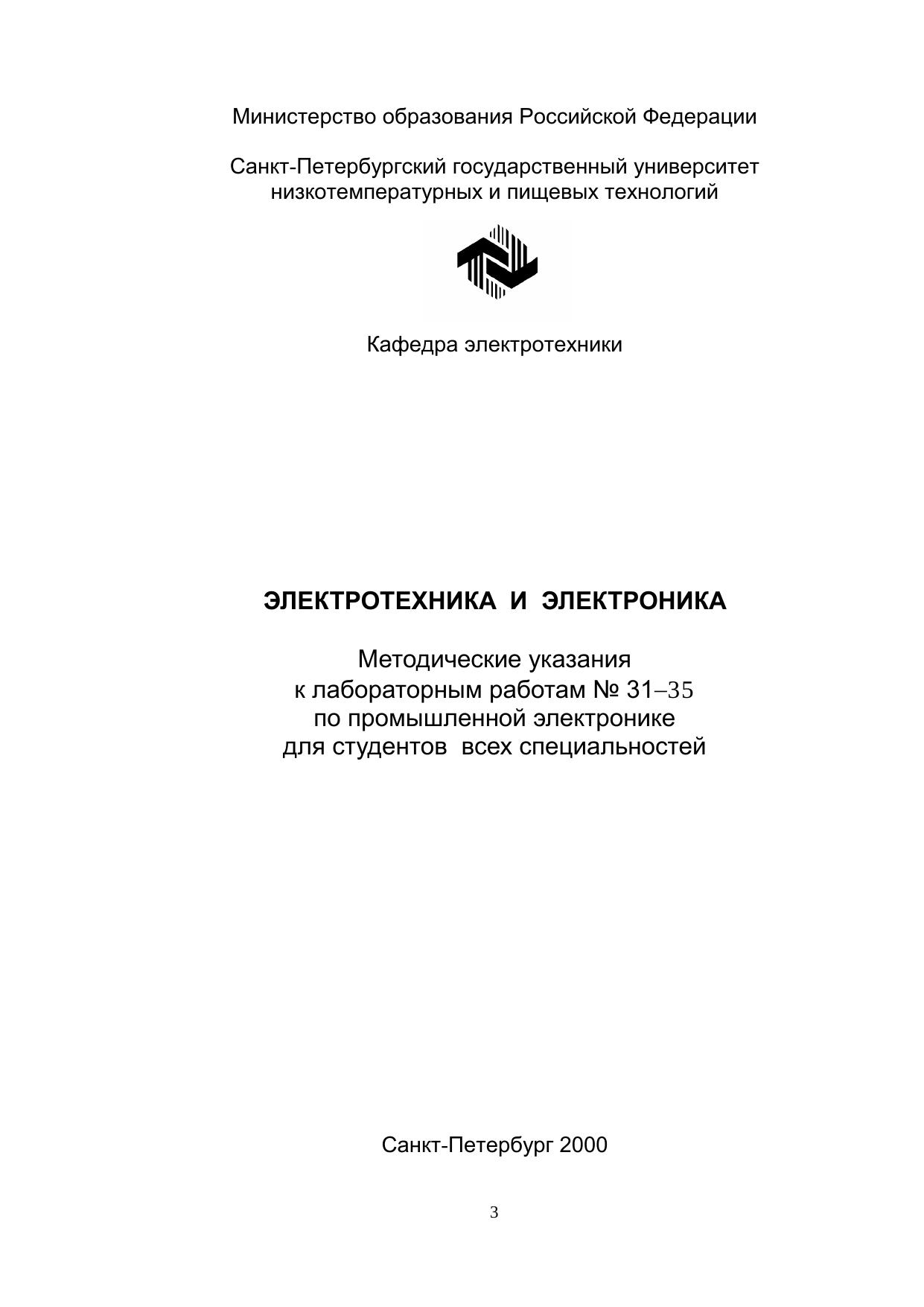 Электротехника и электроника: Метод. указания к лабораторным работам № 31,35 по промышленной электронике для студентов всех спец