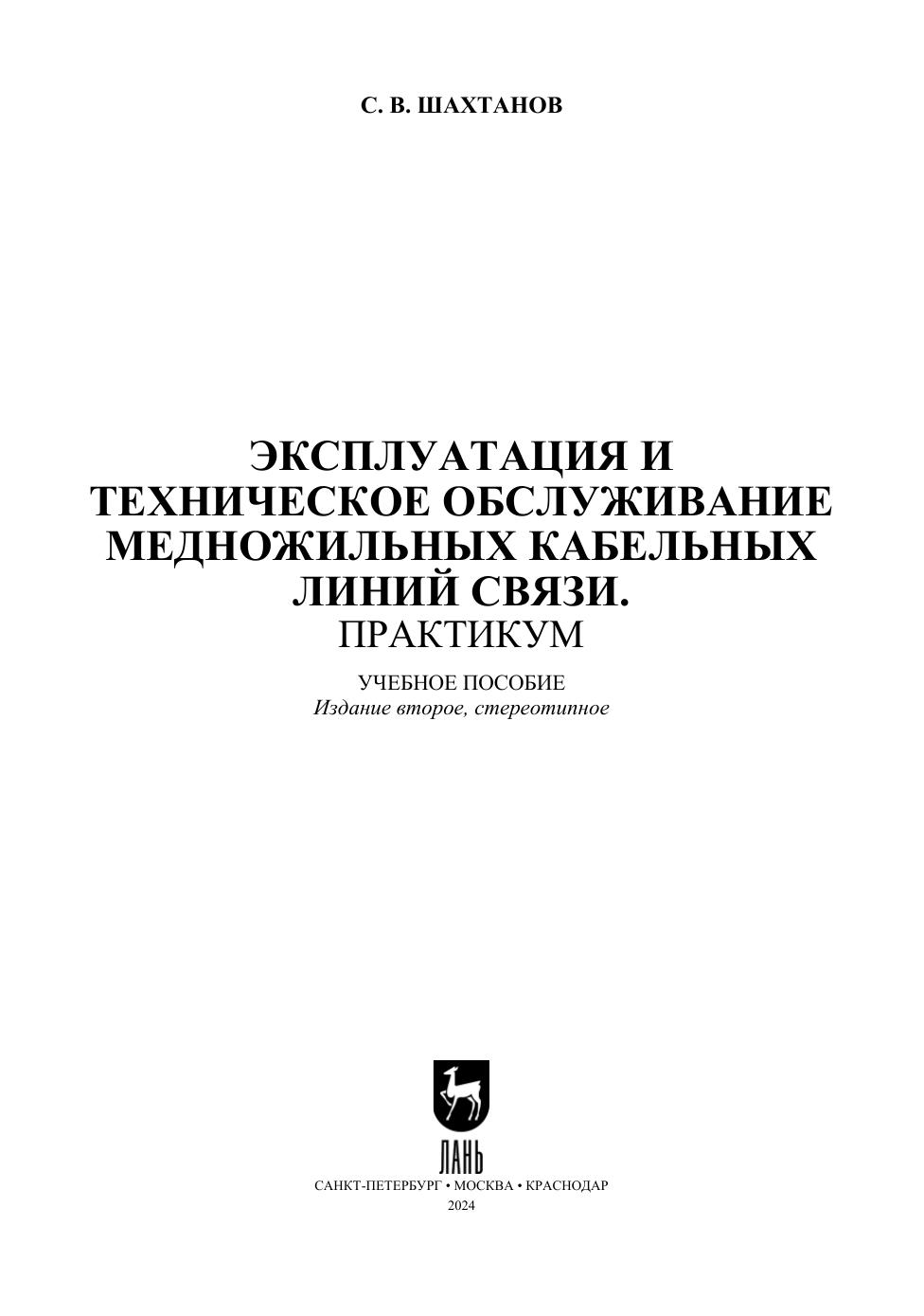 Эксплуатация и техническое обслуживание медножильных кабельных линий связи. Практикум