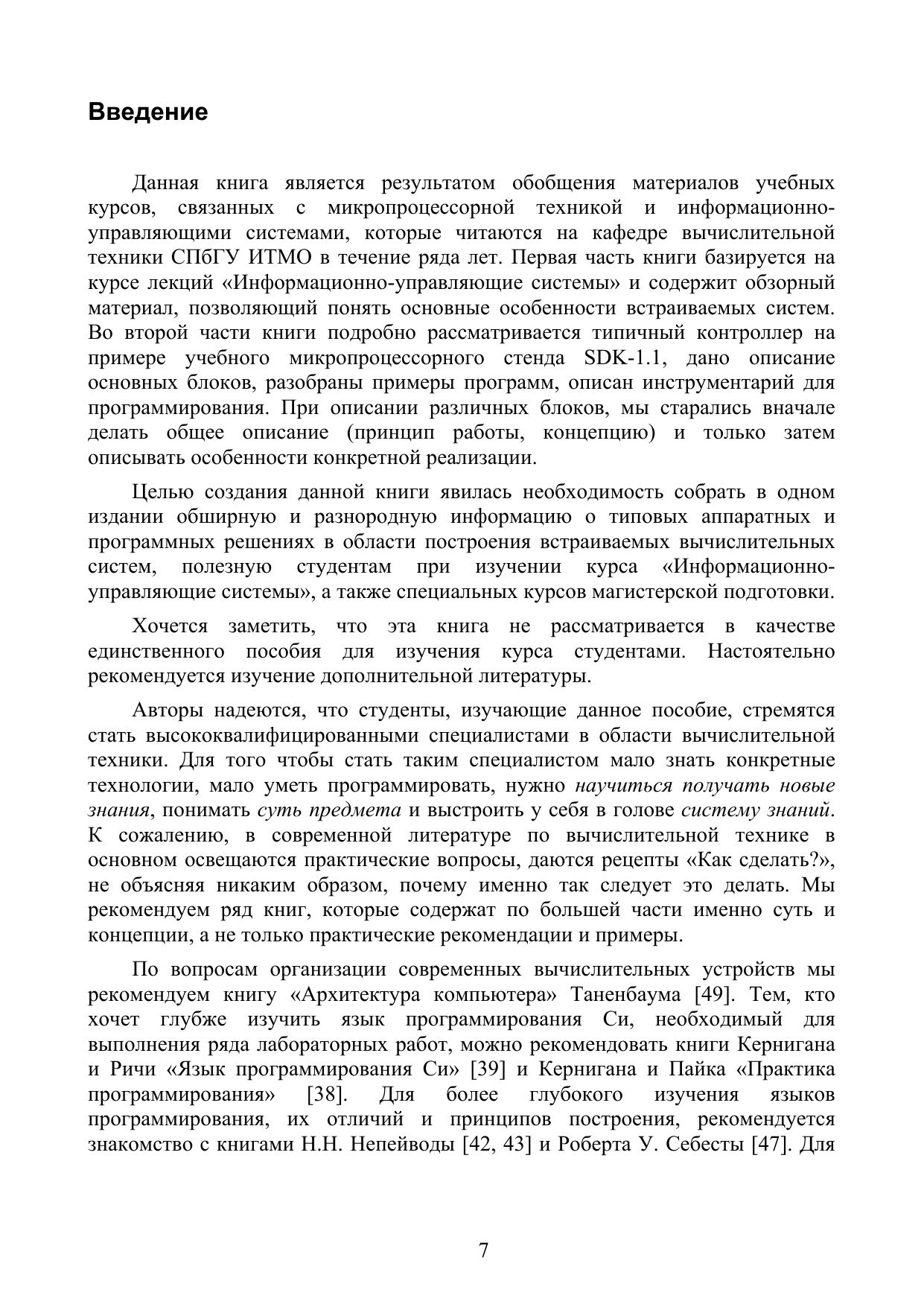 Учебное пособие является введением в проблематику организации аппаратных и программных средств встраиваемых вычислительных систем (ВВС). Рассматриваются базовые понятия и основные характеристики ВВС, элементная база, аппаратные и программные средства, используемые для простроения ВВС, особенности реализации и программирования современных контроллеров ВВС на примере учебного контроллера SDK-1.1. Для подготовки бакалавров по направлению 230100 «Информатика и вычислительная техника», магистров по программам 230100.68.13 «Сети ЭВМ и телекоммуникации», 230100.68.31 «Проектирование встроенных вычислительных систем», 230100.68.32 «Системотехника интегральных вычислителей. Системы на кристалле».