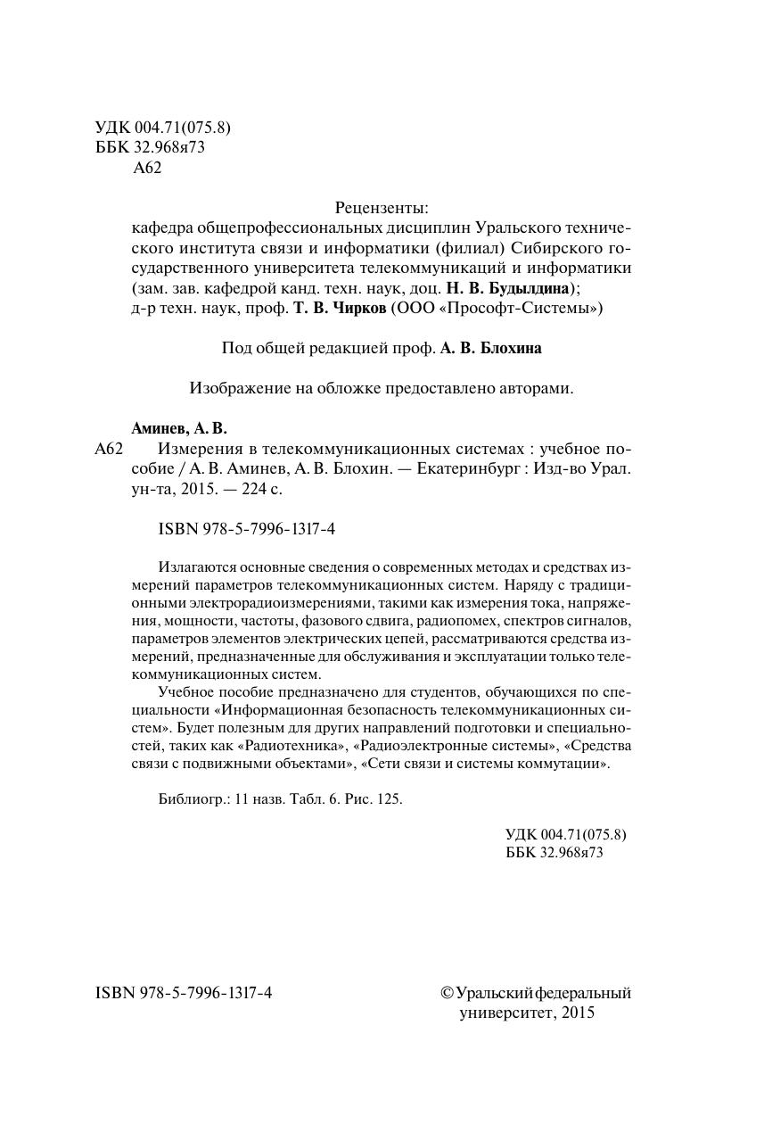 Излагаются основные сведения о современных методах и средствах измерений параметров телекоммуникационных систем. Наряду с традиционными электрорадиоизмерениями, такими как измерения тока, напряжения, мощности, частоты, фазового сдвига, радиопомех, спектров сигналов, параметров элементов электрических цепей, рассматриваются средства измерений, предназначенные для обслуживания и эксплуатации только телекоммуникационных систем. Учебное пособие предназначено для студентов, обучающихся по специальности «Информационная безопасность телекоммуникационных систем». Будет полезным для других направлений подготовки и специальностей, таких как «Радиотехника», «Радиоэлектронные системы», «Средства связи с подвижными объектами», «Сети связи и системы коммутации».