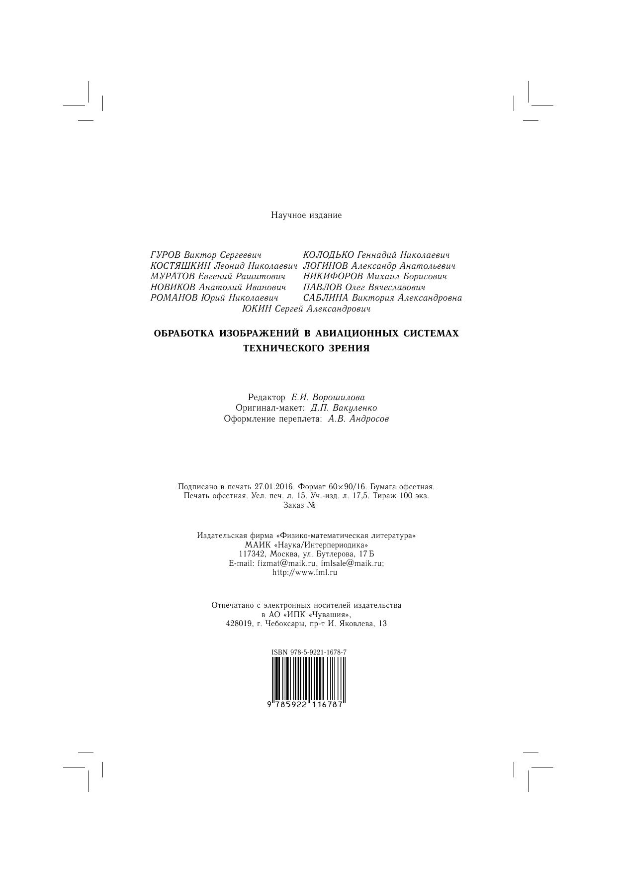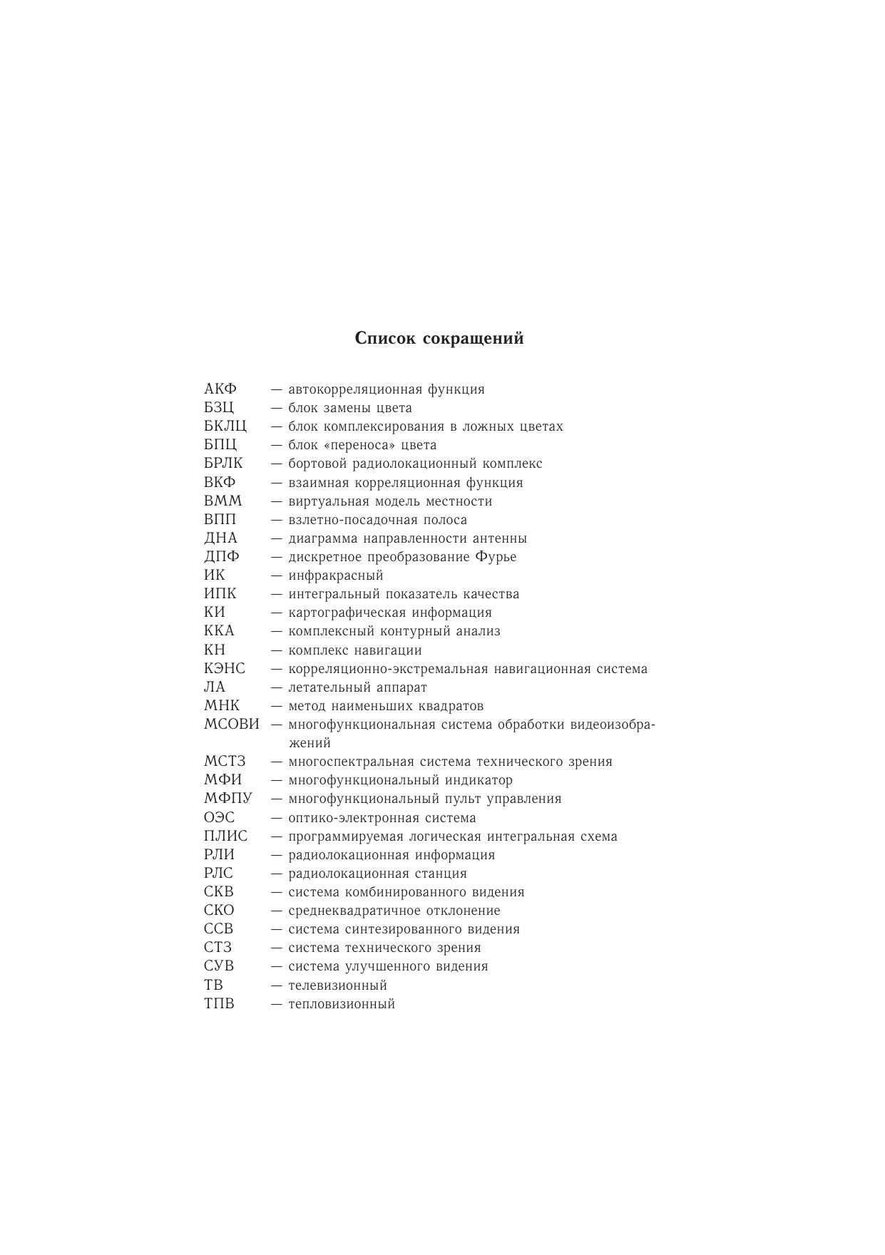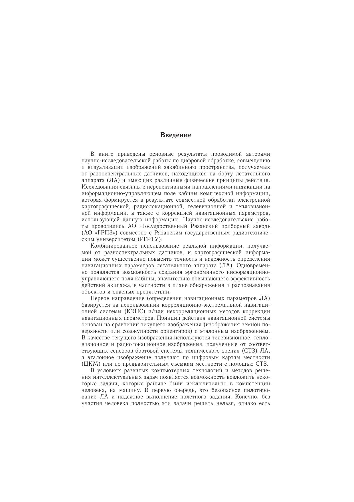 В монографии приведен обзор известных и перспективных многоспектральных систем технического зрения. Изложены алгоритмы предварительной обработки изображений. Приведены разработанные авторами математические модели телевизионных и радиолокационных изображений зон обзора в плоскости Земли, а также методы совмещения изображений. Для научных и инженерных работников, аспирантов, студентов старших курсов, специализирующихся в области разработки алгоритмов для бортовых ЭВМ.
