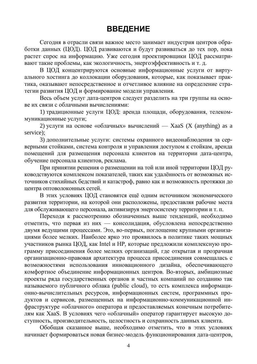 Рассмотрены вопросы развития пассивной основы ЦОД с использованием электрических и волоконно-оптических кабелей связи. Освещены вопросы физических основ передачи сигнала по оптическим кабелям и кабелю «витая пара». Изложена методика инженерного расчёта контролируемых параметров и тестирования кабельной системы на основе витой пары. Представлена информация о серверных ресурсах, системах хранения данных, энергоэффективности. Затронуты вопросы проектирования и монтажа инфраструктуры ЦОД. Приведены вопросы и задания для самоконтроля и необходимые приложения.