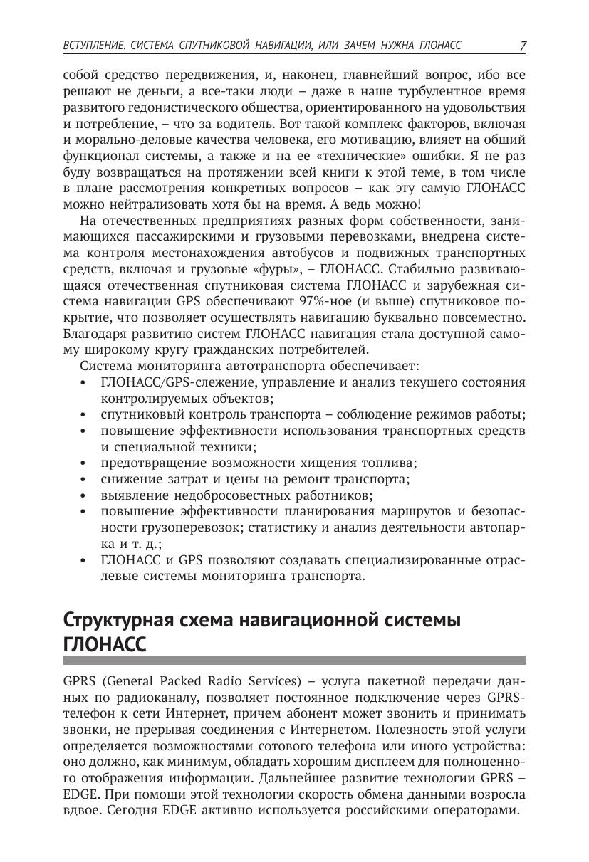 Глобальная навигационная спутниковая система (ГЛОНАСС), разработанная в советское время для военных целей, сегодня активно применяется в транспортной инфраструктуре. Главная задача ГЛОНАСС - определять местоположение и скорость движения в современных электронных устройствах, дополнена полезным многоуровневым функционалом, доступным для осуществления контроля и безопасности. С помощью данной книги вы сможете ознакомиться с новыми инновационными разработками по этой теме, научитесь «расшифровывать» данные со спутников, получите ответы на актуальные для специалистов отрасли вопросы по функционалу, выбору, монтажу и эксплуатации ГЛОНАСС-систем.