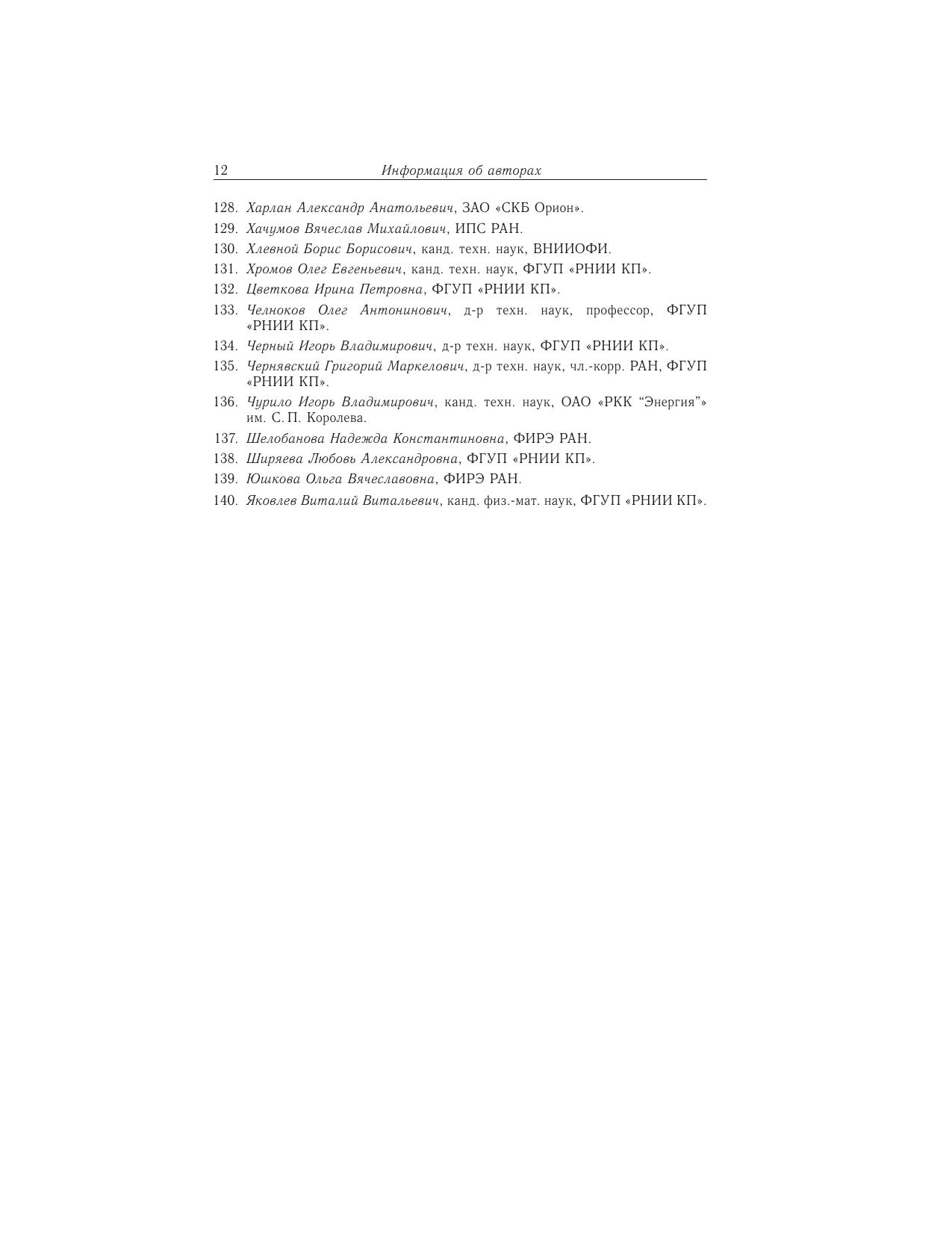 В книге представлены статьи, подготовленные на основе докладов научно-технической конференции, проведенной в ФГУП "РНИИ КП". Статьи посвящены следующим направлениям ракетно-космического приборостроения и информационных технологий: ГЛОНАСС, системы связи и ретрансляции, поиска и спасания системы и технологии дистанционного зондирования Земли и спутникового мониторинга наземные комплексы управления и системы бортовые специальные системы, проблемы конструирования, технологии производства и качества РЭА автоматизированные системы управления, информационные технологии и системы мониторинга системы для космических исследований, новые технологии в космосе и др.Для специалистов, интересующихся новейшими достижениями в указанных научных направлениях.