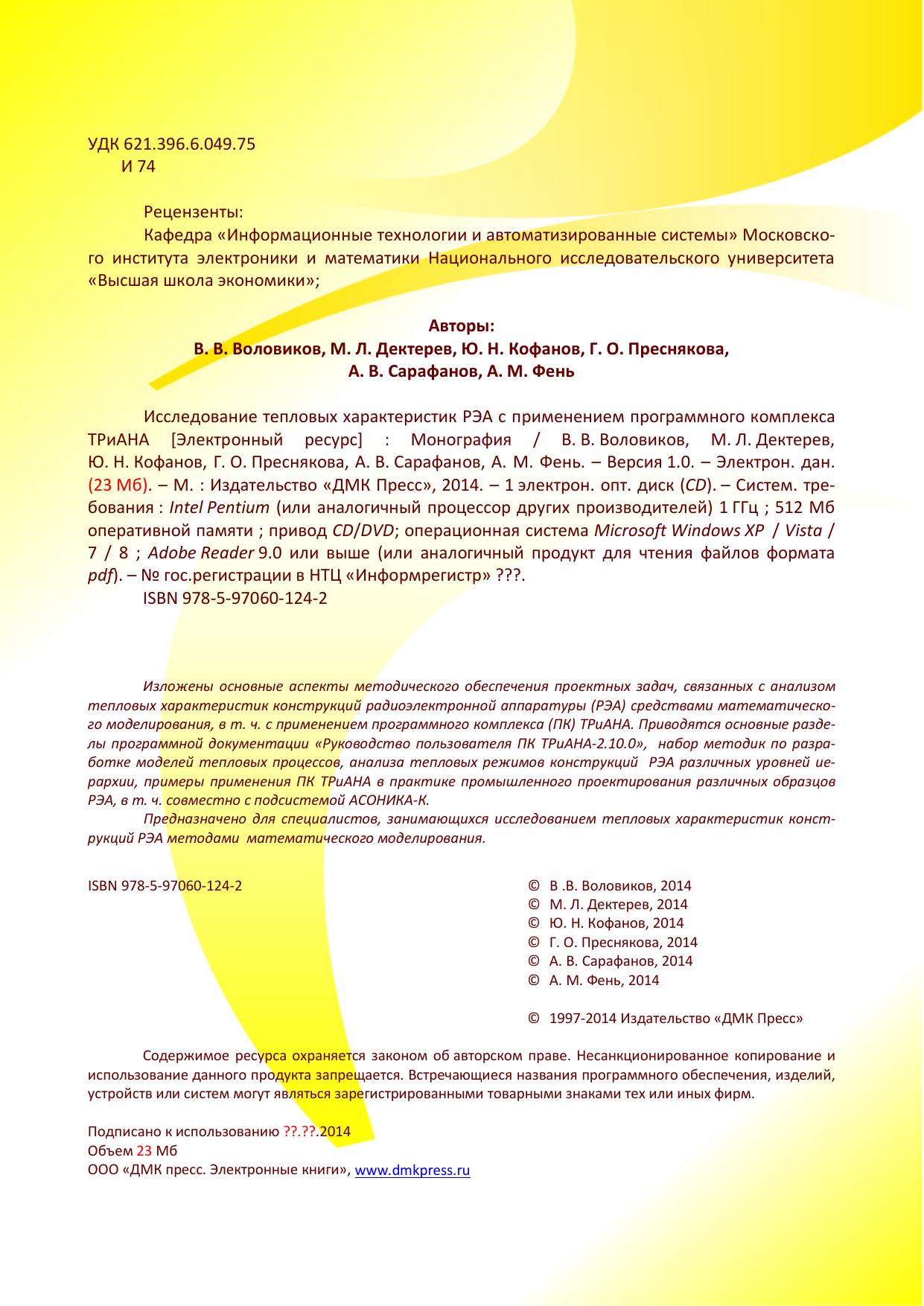 Авторы: Воловиков В.В., Дектерев М.Л., Кофанов Ю.Н., Преснякова Г.О., Сарафанов А.В., Фень А.М.