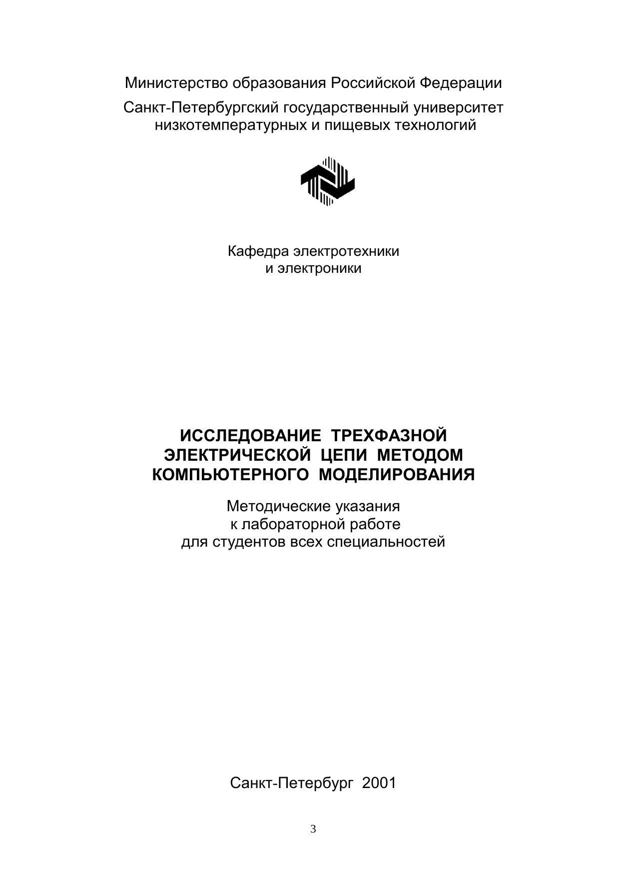 Исследование трехфазной электрической цепи методом компьютерного моделирования: Метод. указания к лабораторной работе для студентов всех специальностей