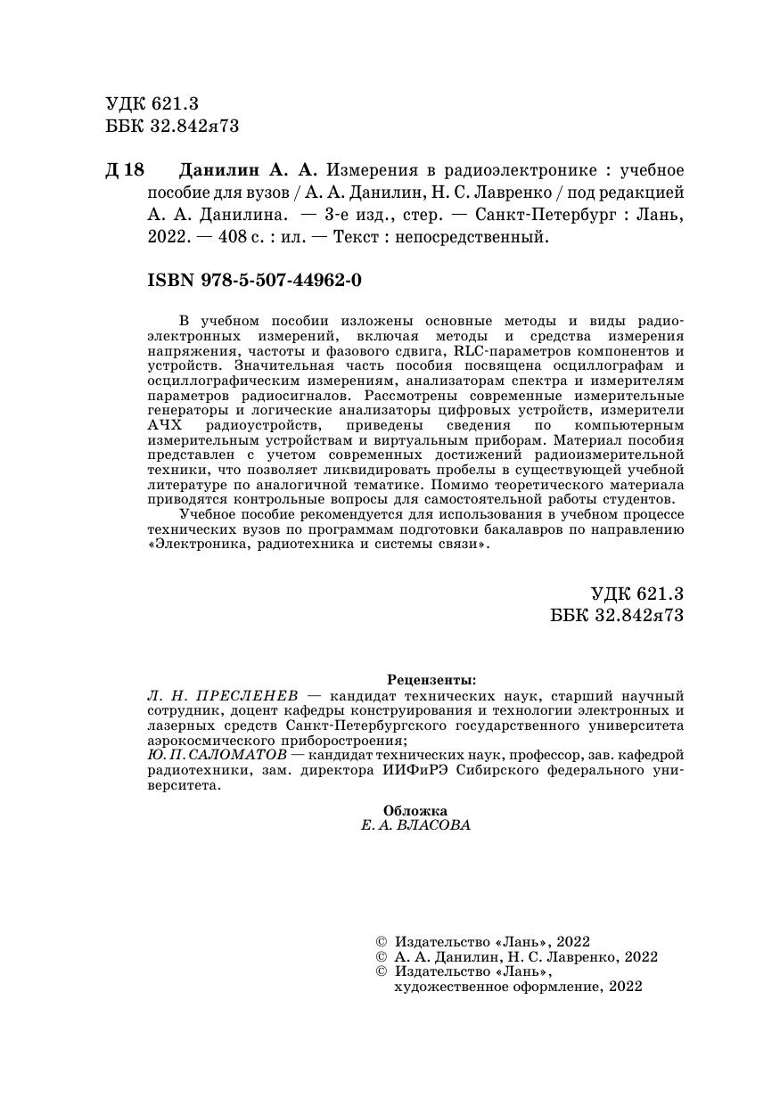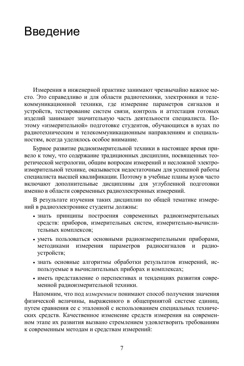В учебном пособии изложены основные методы и виды радиоэлектронных измерений, включая методы и средства измерения напряжения, частоты и фазового сдвига, RLC-параметров компонентов и устройств. Значительная часть пособия посвящена осциллографам и осциллографическим измерениям, анализаторам спектра и измерителям параметров радиосигналов. Рассмотрены современные измерительные генераторы и логические анализаторы цифровых устройств, измерители АЧХ радиоустройств, приведены сведения по компьютерным измерительным устройствам и виртуальным приборам. Материал пособия представлен с учетом современных достижений радиоизмерительной техники, что позволяет ликвидировать пробелы в существующей учебной литературе по аналогичной тематике. Помимо теоретического материала приводятся контрольные вопросы для самостоятельной работы студентов.