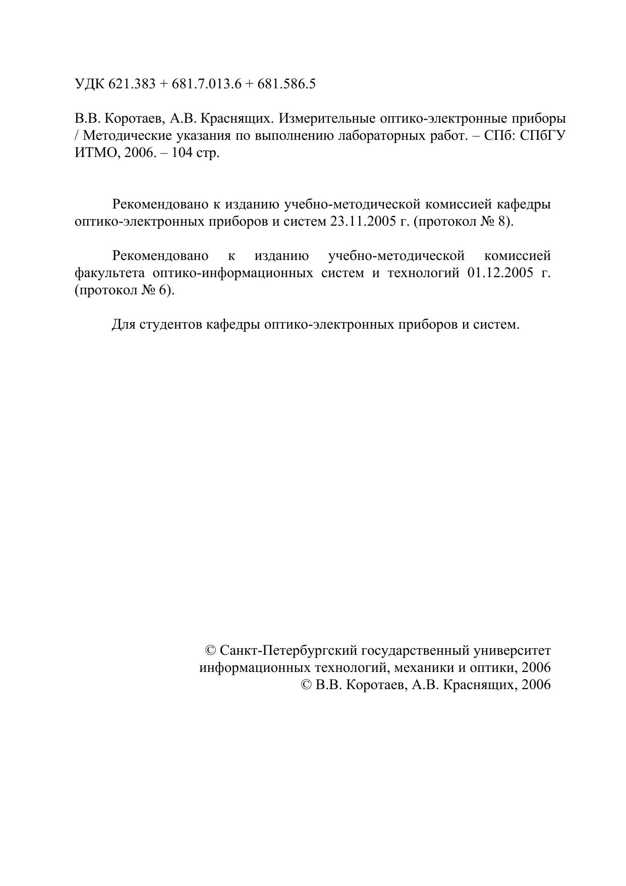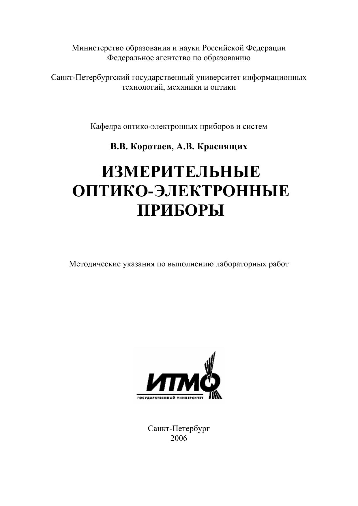 Измерительные оптико-электронные приборы. Методические указания по выполнению лабораторных работ