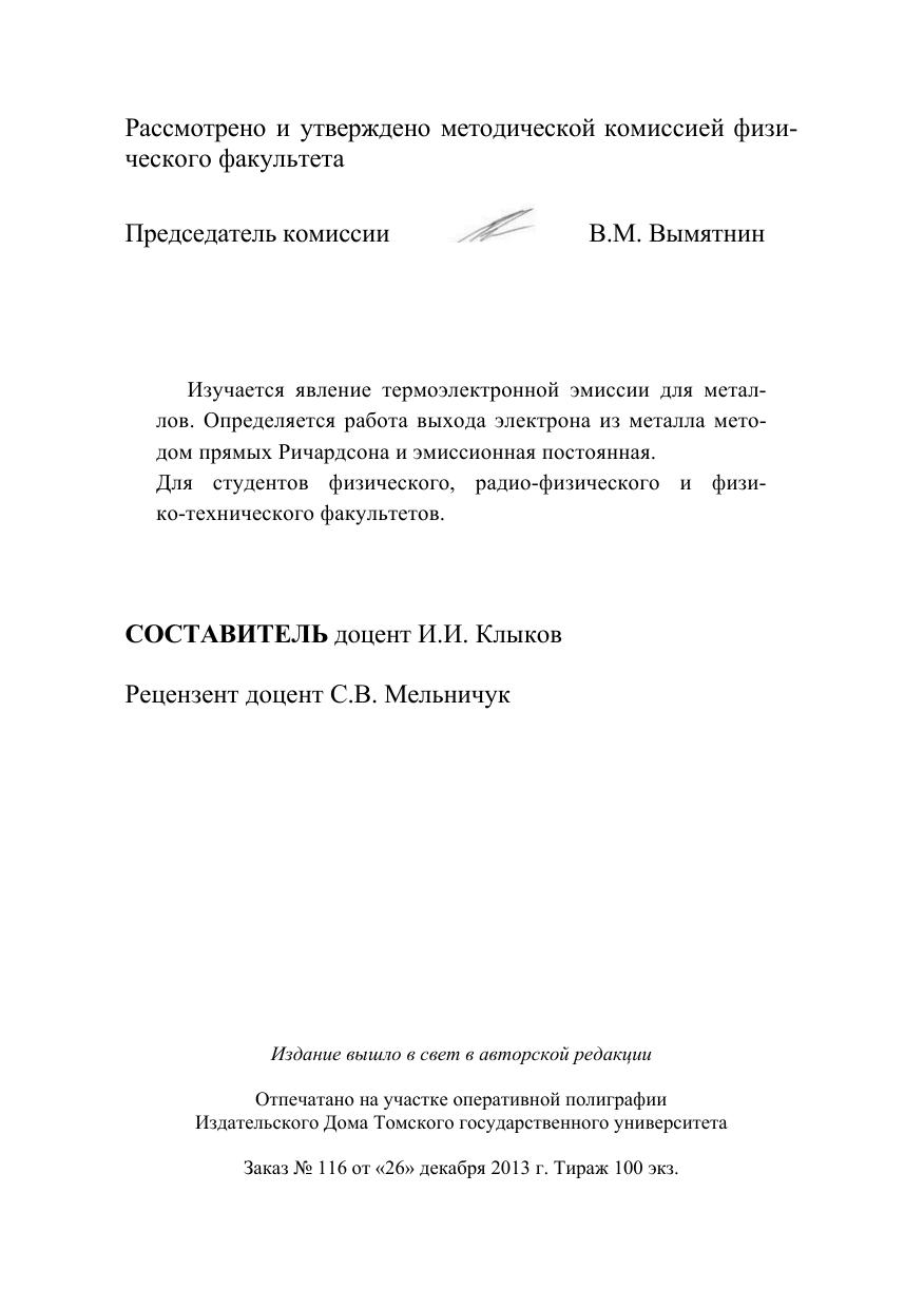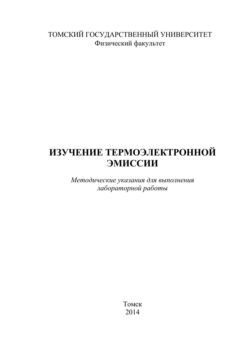 Изучение термоэлектронной эмиссии. Методические указания для выполнения лабораторной работы