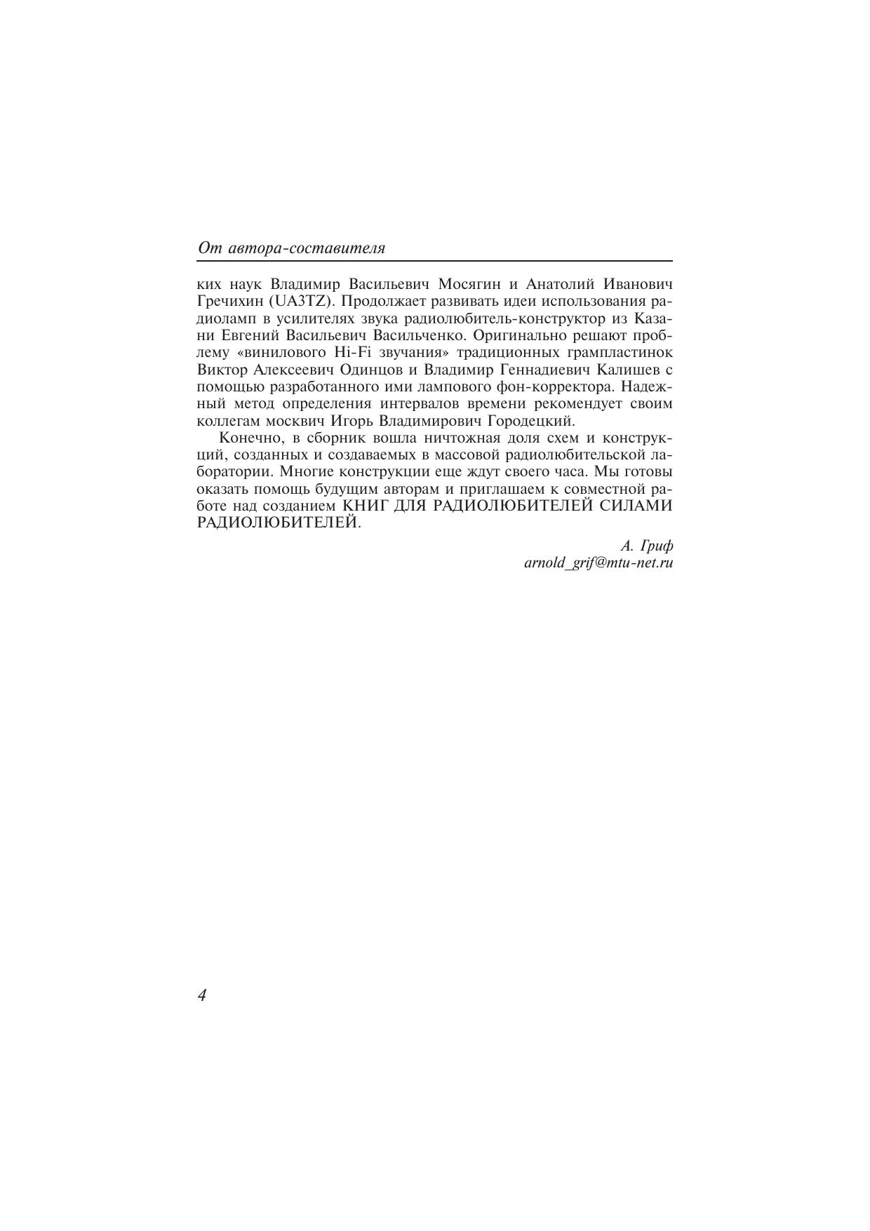 Материалы в сборнике подобраны таким образом, чтобы удовлетворить широкий круг читателей. И тех, кто стремится построить аппаратуру Hi-Fi и добиться высококачественного звучания в домашних «концертных залах», и тех, кто ищет пути для внедрения электронных устройств в свои «Жигули» или собрать бытовые автоматы для дома и дачи. Все описания схем и конструкции, опубликованные здесь, подсказаны авторам жизнью и уже прошли испытание на практике. Они звучали, включали, контролировали... Так что, если у вас «схема не заработает» сразу, проверьте себя несколько раз. Авторские разработки не на бумаге, а в «железе» действовали надежно.