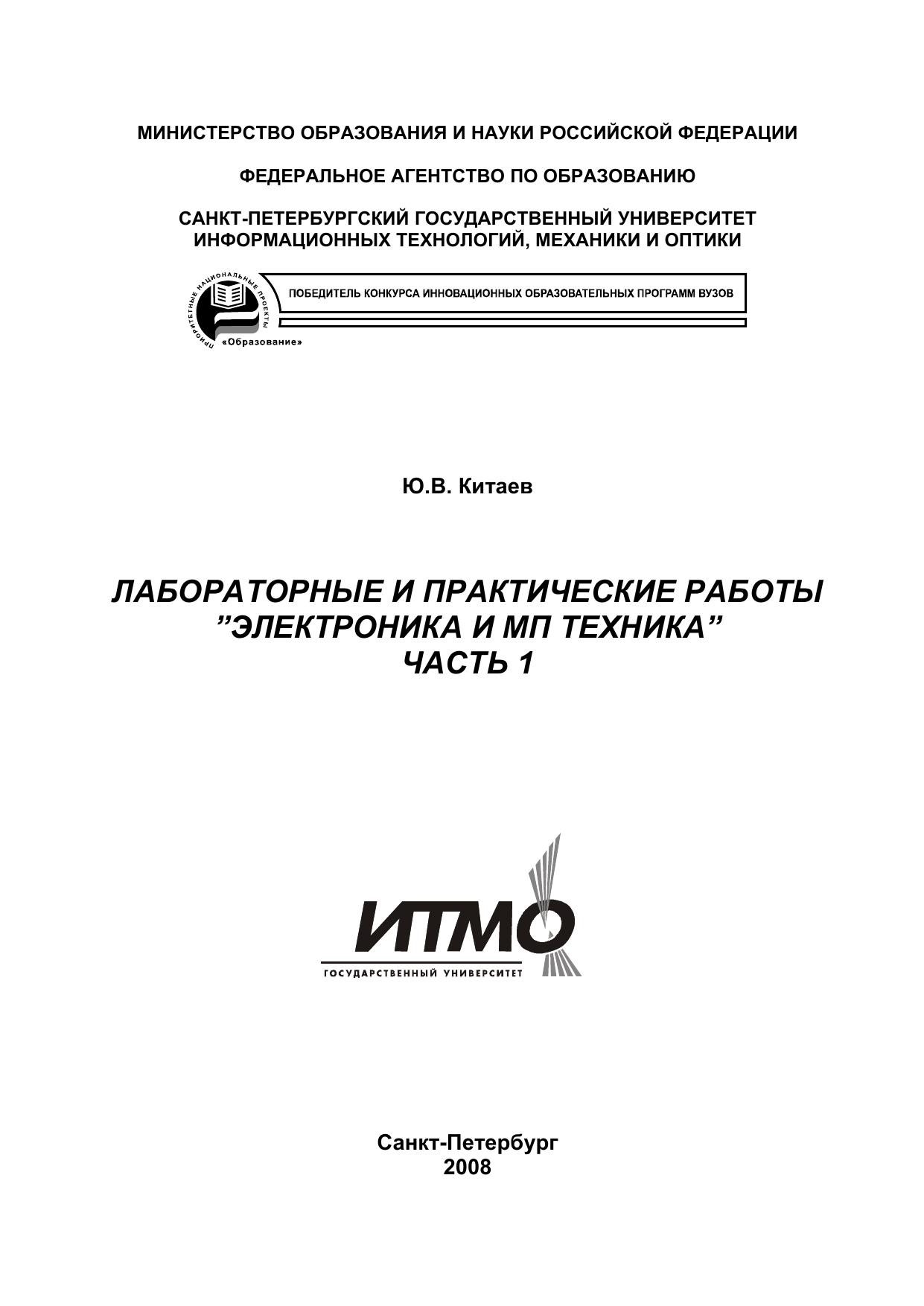 Лабораторные и практические работы: Электроника и МП техника. Ч.1.