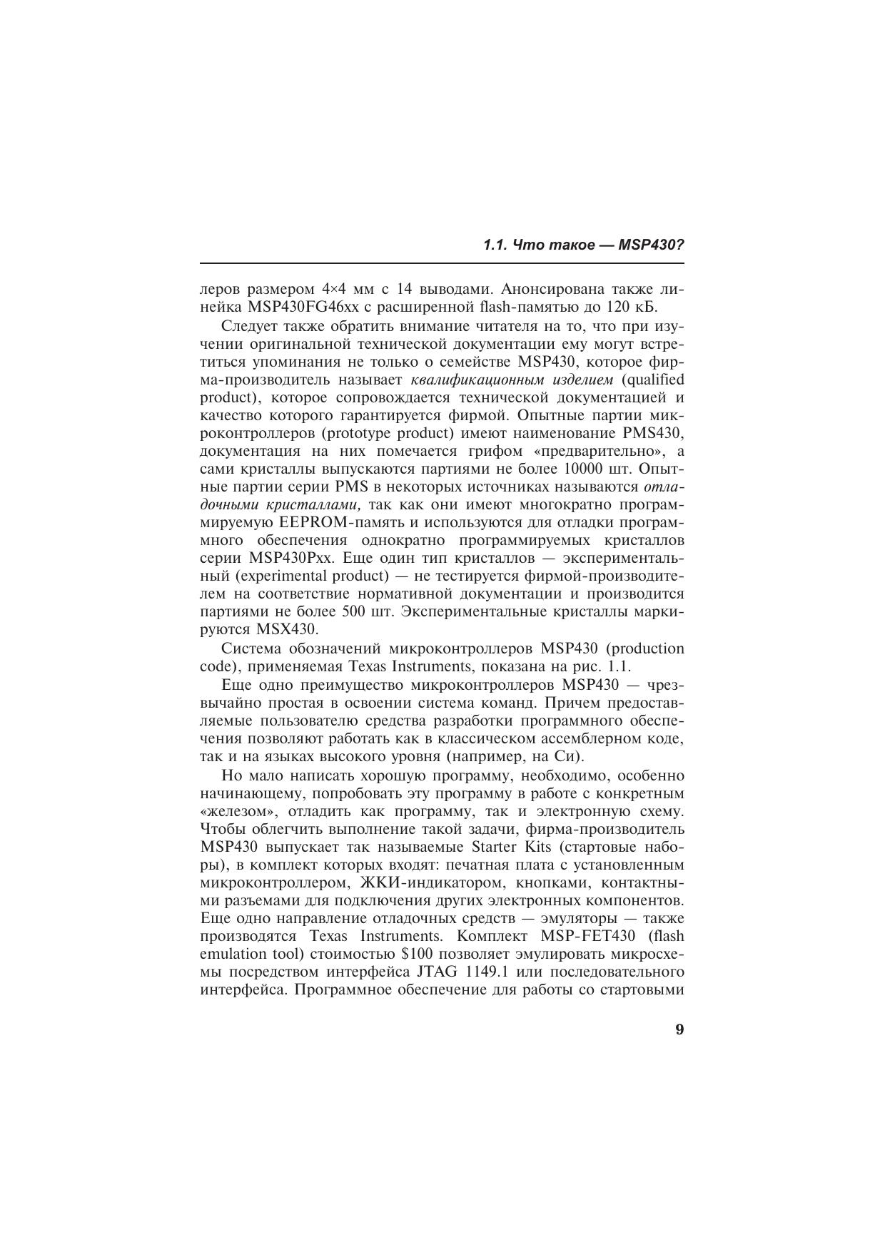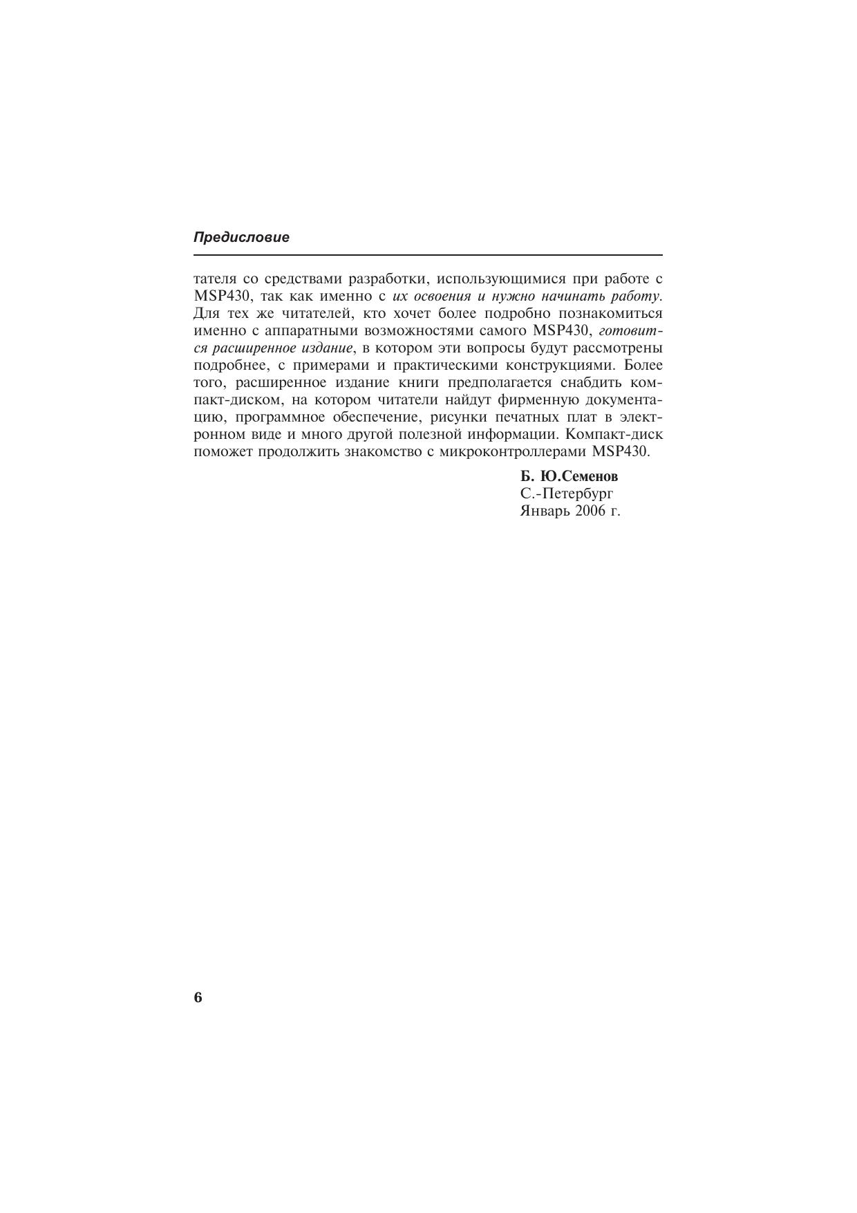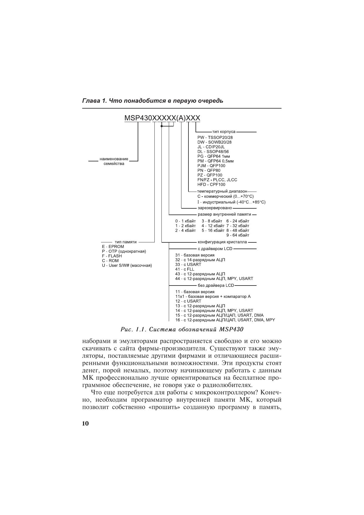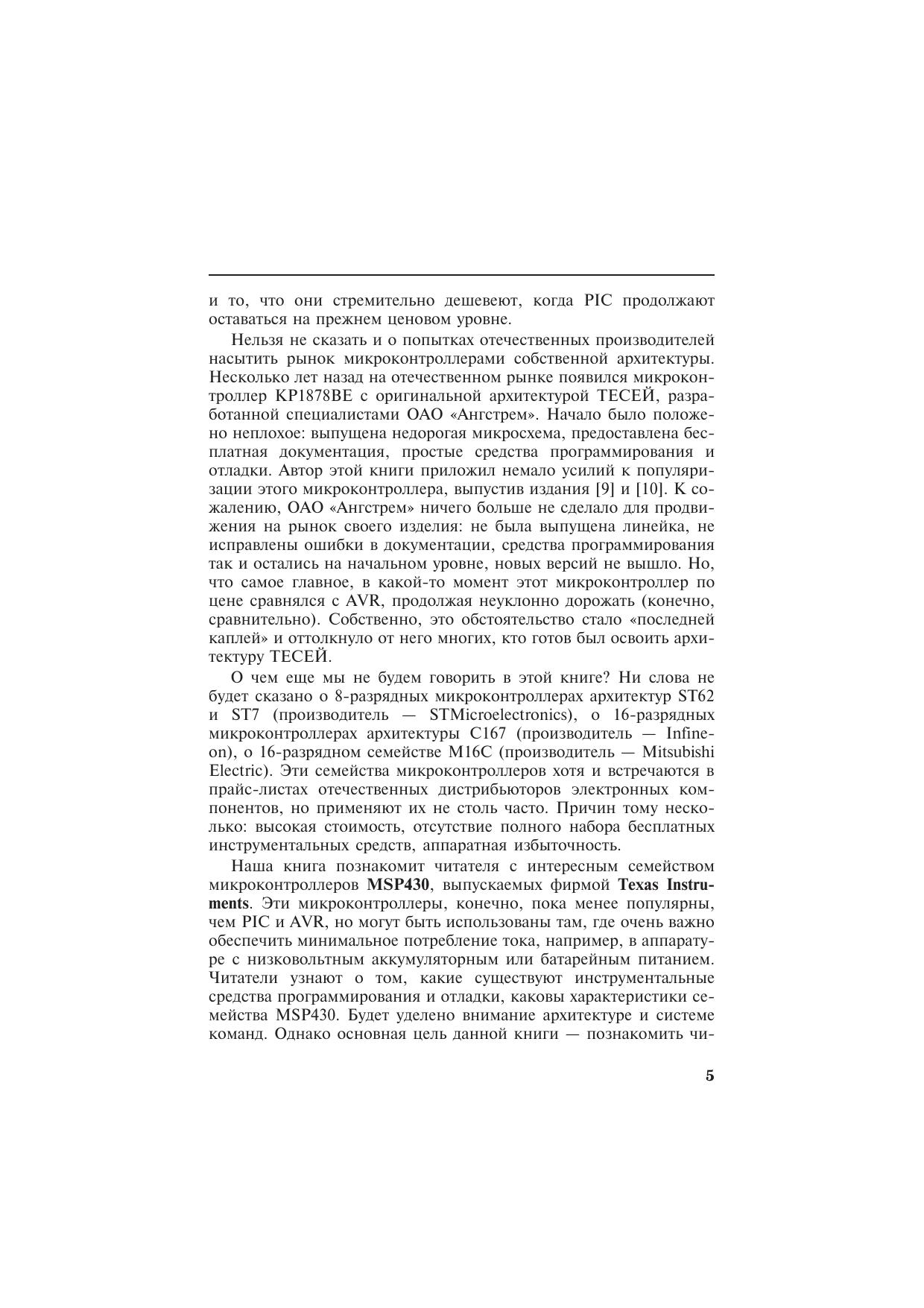Книга посвящена микроконтроллерам серии MSP430, которые производятся фирмой Texas Instruments. Едва ли удастся найти конкурента этим микроконтроллерам по величине потребляемого тока и производительности, если речь идет о разработке автономных малогабаритных приборов с низковольтным батарейным питанием. Книга в доступной форме поможет разобраться с архитектурой и системой команд MSP430, сориентирует читателя в многообразии «софта» для разработки программного обеспечения, расскажет о способах «прошивки» памяти MSP430, о существующих программаторах. Приведенные схемы, печатные платы и сборочные рисунки позволят собрать несколько несложных программаторов flash-памяти MSP430 самостоятельно.Книга адресована инженерам, начинающим работать с микроконтроллерами, студентам радиотехнических специальностей вузов, специалистам, занимающимся обслуживанием и ремонтом электронной аппаратуры, радиолюбителям, а также всем тем, кто интересуется перспективной электронной техникой.