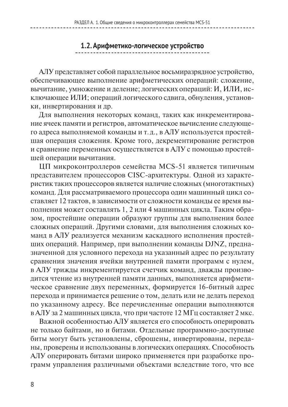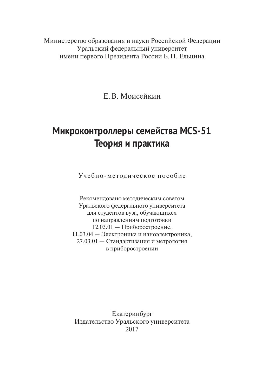 В пособии рассмотрены общие вопросы организации микроконтроллеров семейства MCS‑51, детально показана организация и функционирование блоков, система команд. Представлено 6 лабораторных работ, посвященных изучению особенностей и программированию на языке ассемблера микроконтроллеров семейства MCS‑51, рассмотрен лабораторный стенд SDK1.1 на базе микроконтроллера ADuC812 компании Analog Devices. Приведены необходимые сведения по работе в системе моделирования однокристальных микроконтроллеров Single-Chip Machine. Пособие предназначено для студентов, обучающихся по дисциплинам «Микропроцессорная техника», «Микропроцессоры в приборах неразрушающего контроля», «Микропроцессоры приборных комплексов», «Системы автоматического управления».