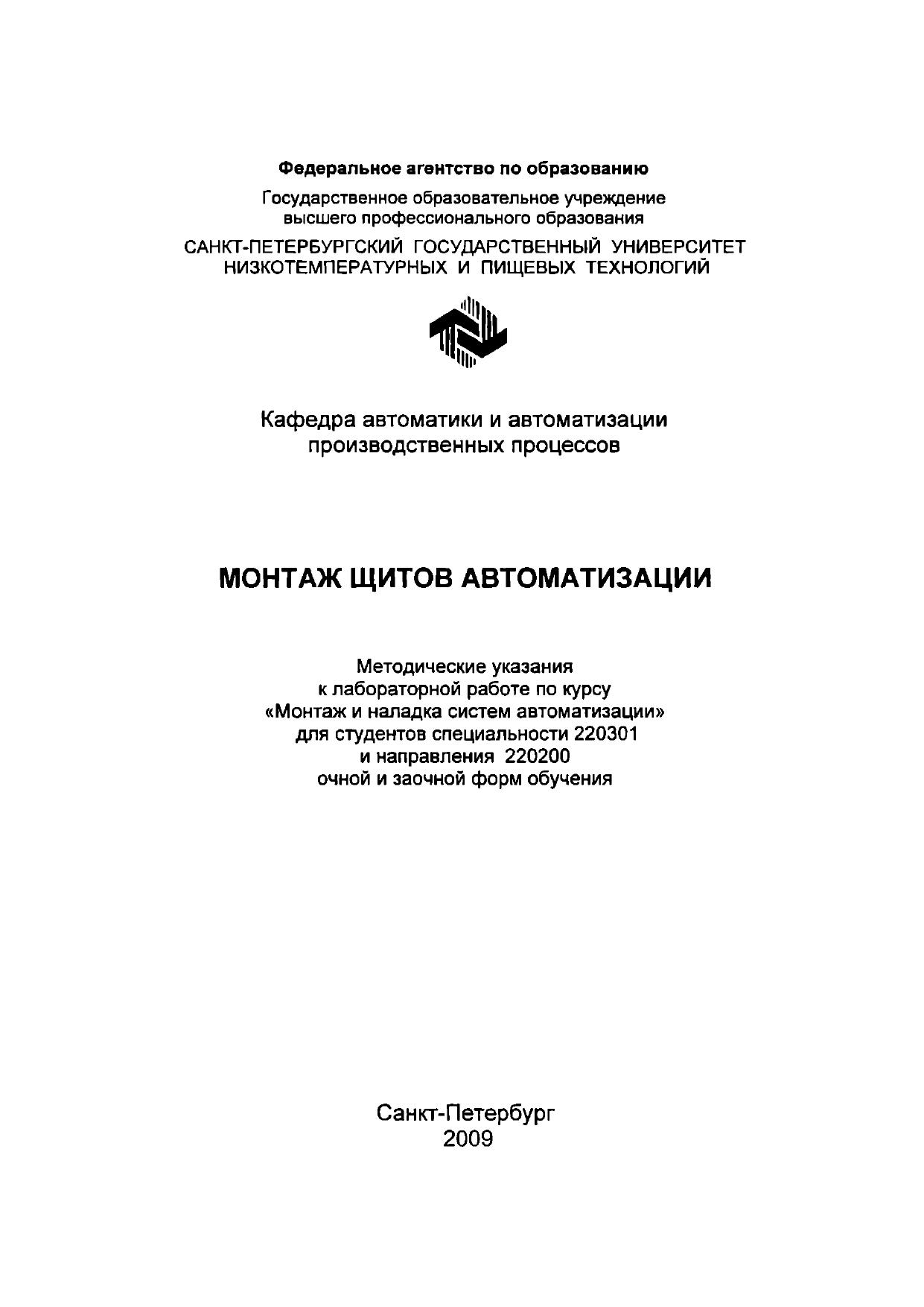 Рассматриваются вопросы монтажа щитов управления систем автоматизации, их конструктивные варианты, внутренние коммутации и нормативные сведения для расчетов. Дан перечень конструкторской документации для проведения монтажа щита управления.