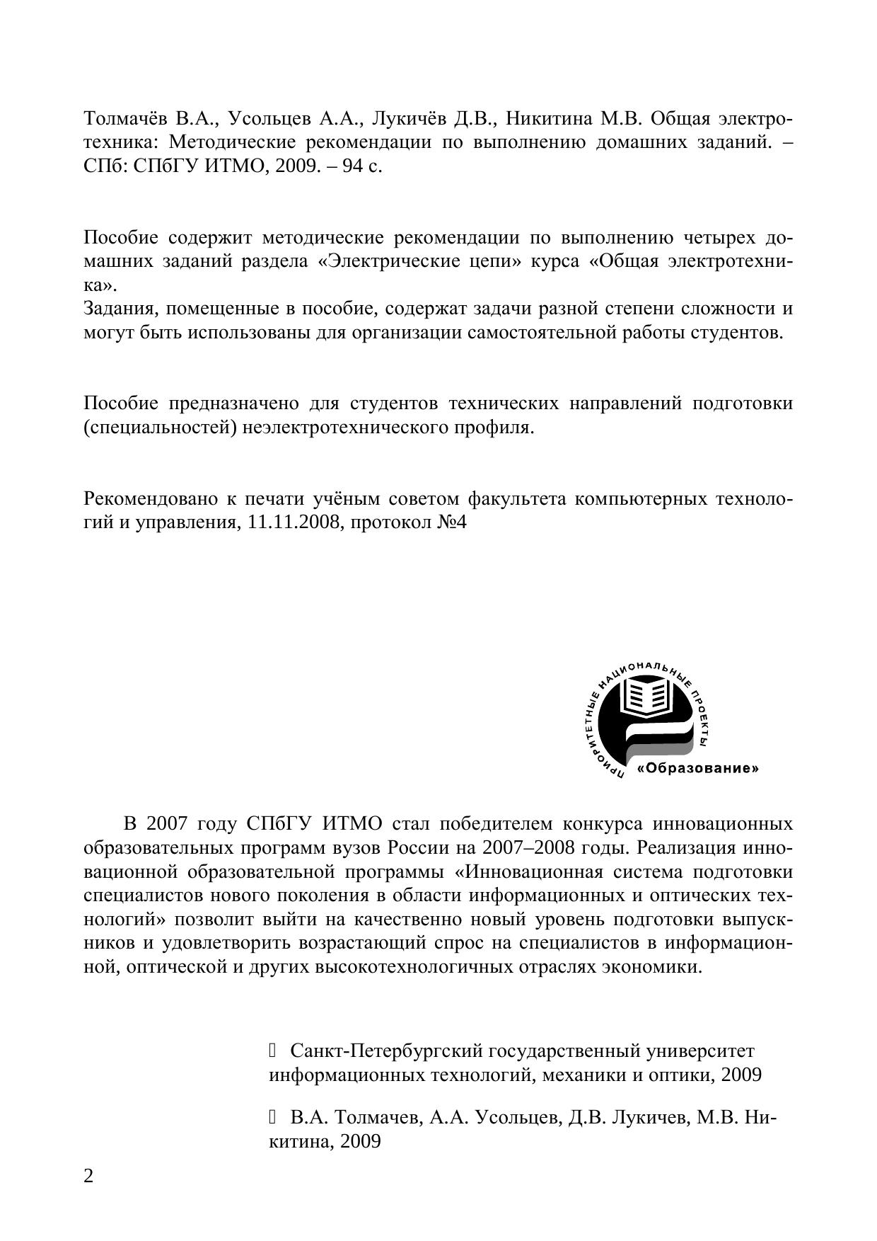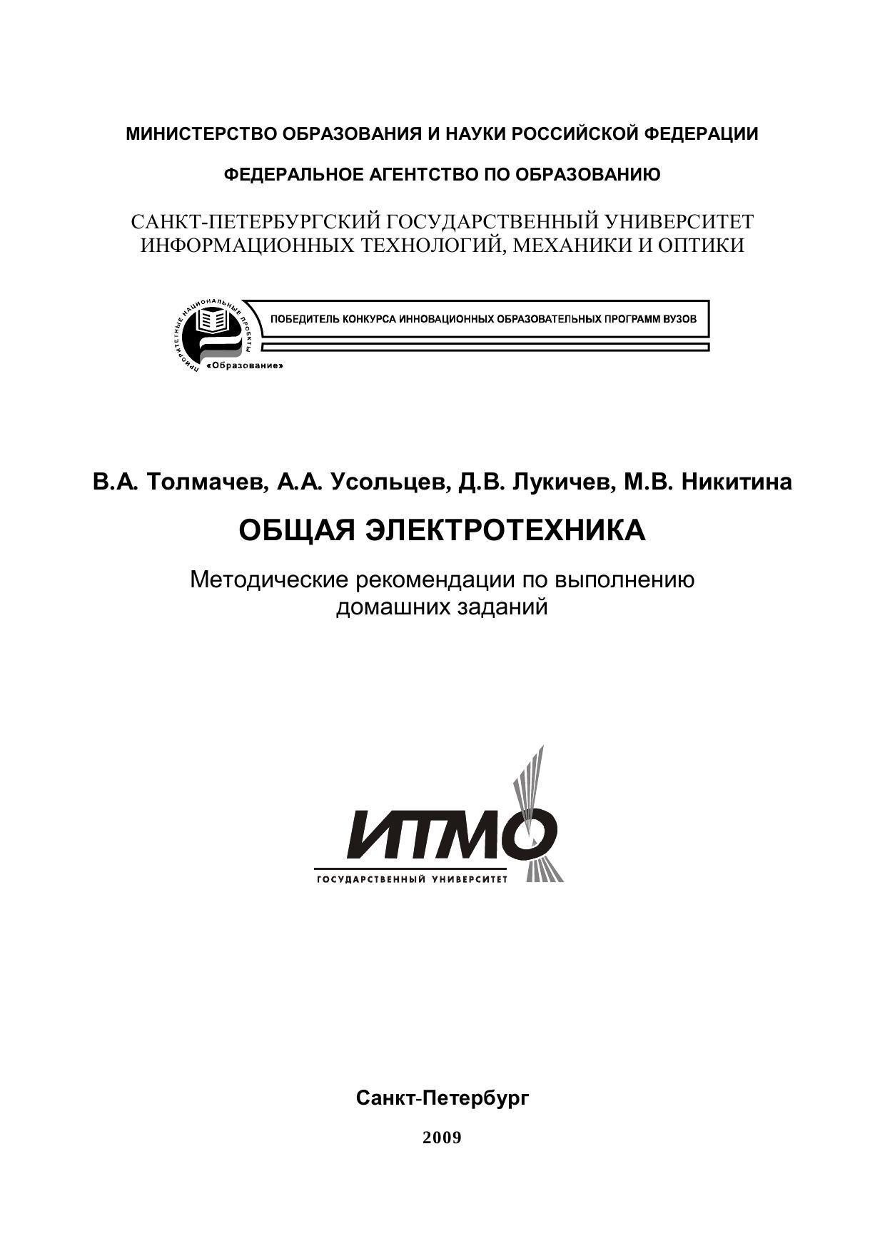 Общая электротехника. Методические рекомендации по выполнению домашних заданий