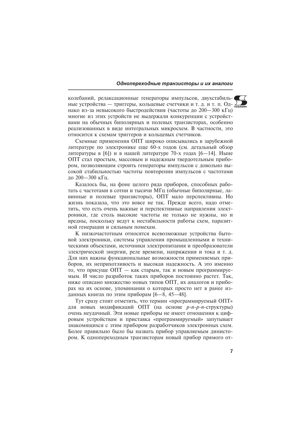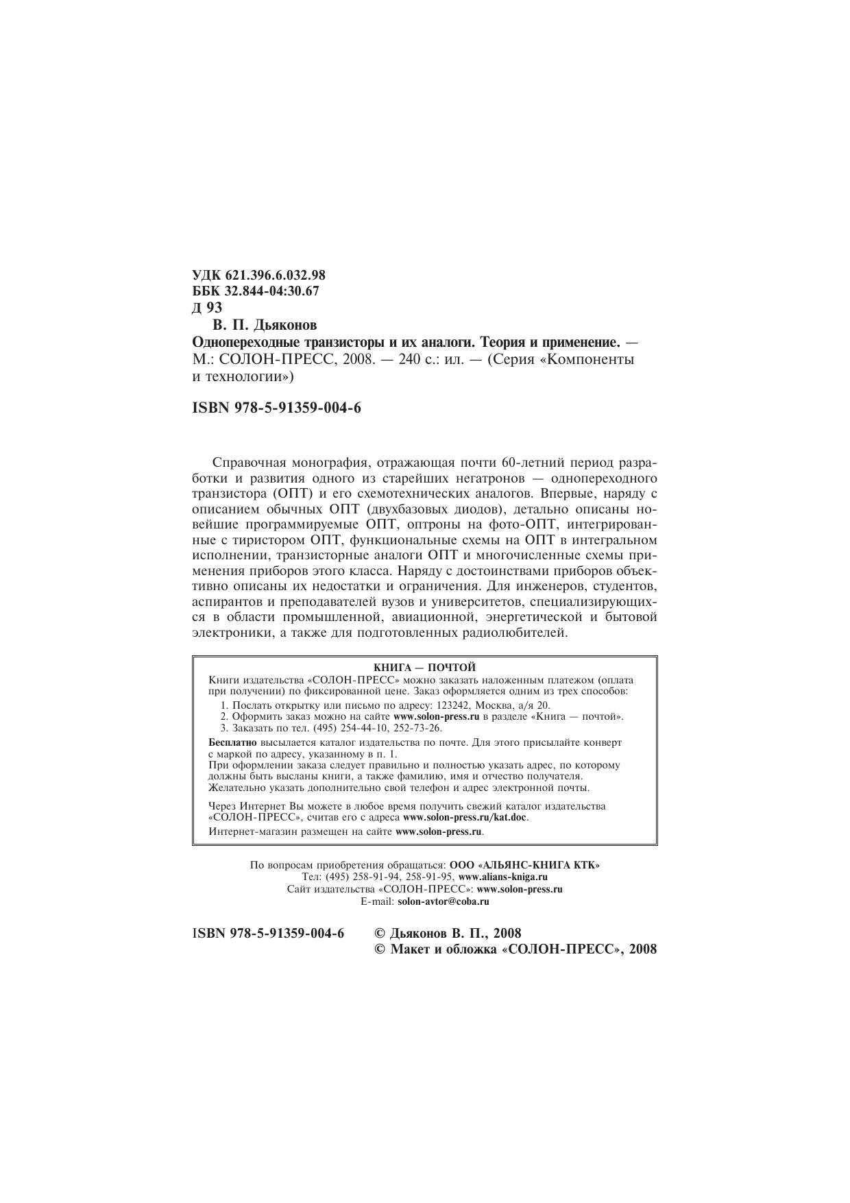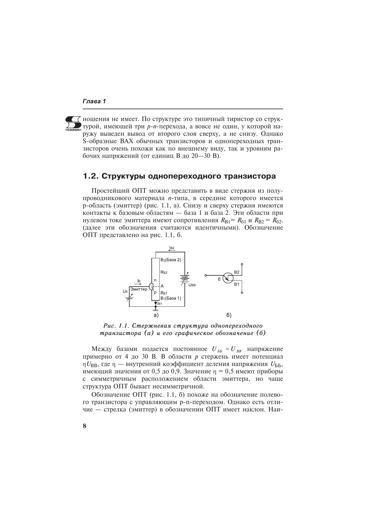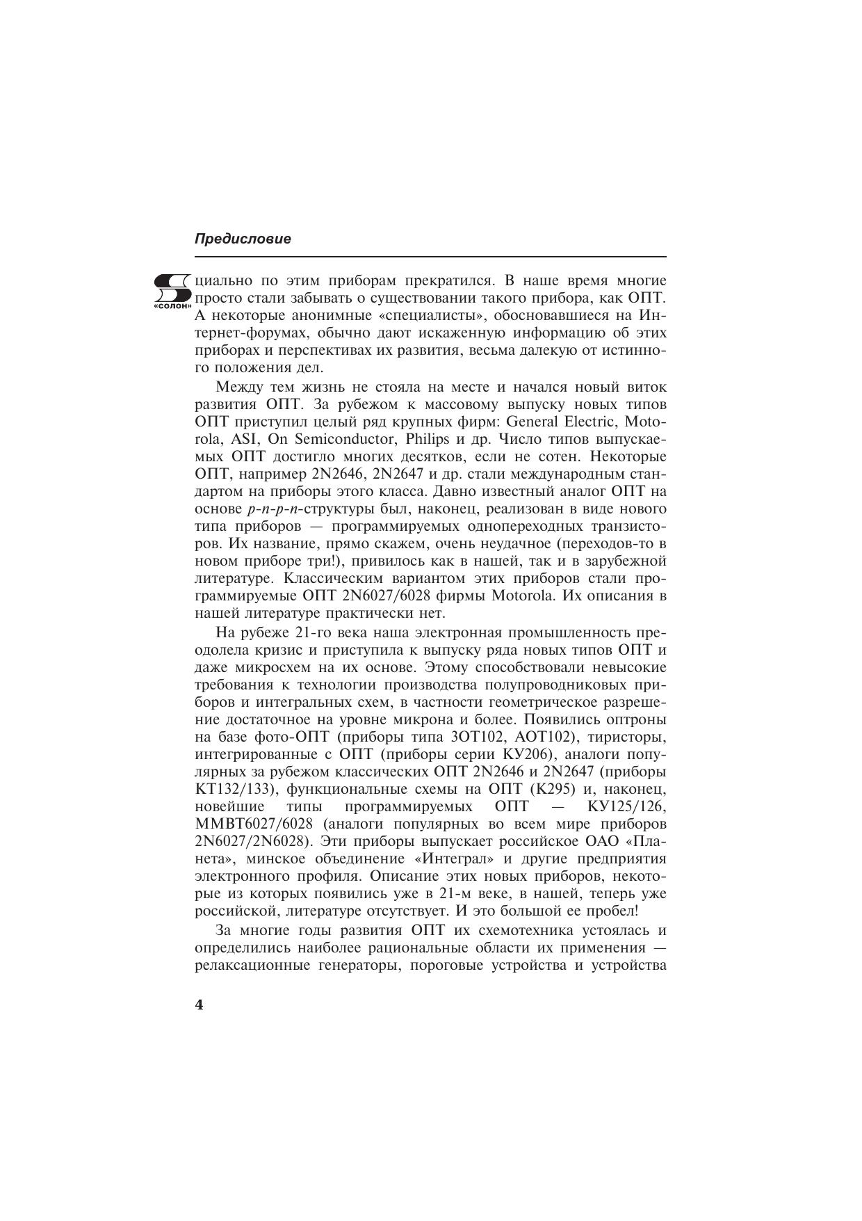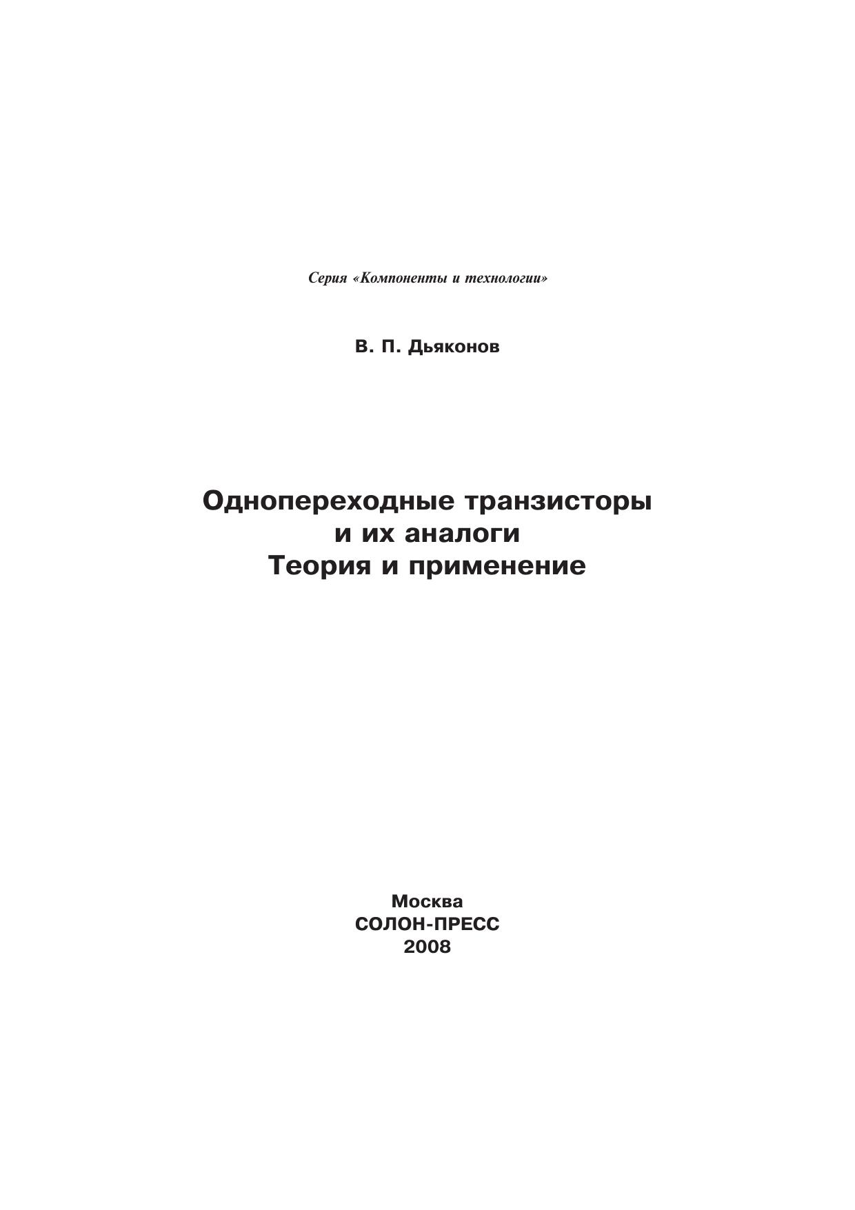 Справочная монография, отражающая почти 60-летний период разработки и развития одного из старейших негатронов — однопереходного транзистора (ОПТ) и его схемотехнических аналогов. Впервые, наряду с описанием обычных ОПТ (двухбазовых диодов), детально описаны новейшие программируемые ОПТ, оптроны на фото-ОПТ, интегрированные с тиристором ОПТ, функциональные схемы на ОПТ в интегральном исполнении, транзисторные аналоги ОПТ и многочисленные схемы применения приборов этого класса. Наряду с достоинствами приборов объективно описаны их недостатки и ограничения. Для инженеров, студентов, аспирантов и преподавателей вузов и университетов, специализирующихся в области промышленной, авиационной, энергетической и бытовой электроники, а также для подготовленных радиолюбителей.