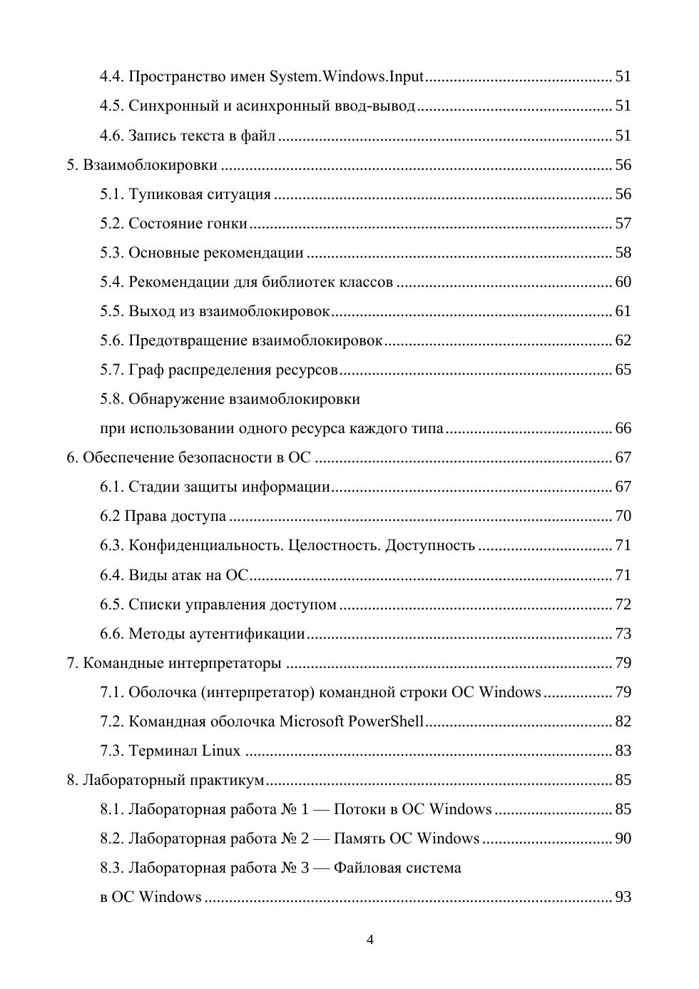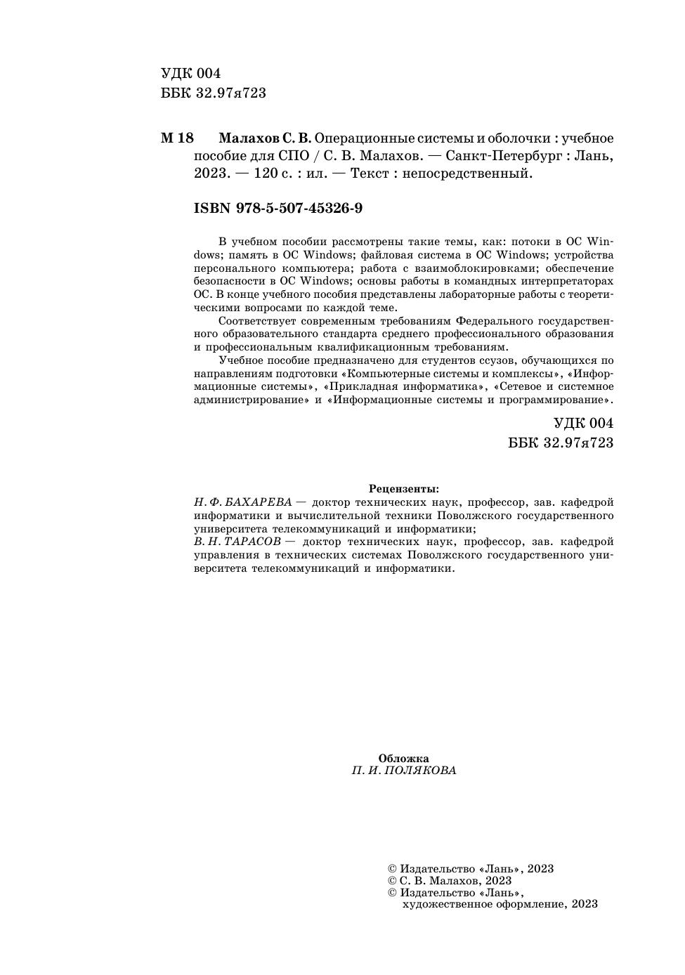 В учебном пособии рассмотрены такие темы, как: потоки в ОС Windows, память в ОС Windows, файловая система в ОС Windows, устройства персонального компьютера, работа с взаимоблокировками, обеспечение безопасности в ОС Windows, основы работы в командных интерпретаторах ОС. В конце учебного пособия представлены лабораторные работы с теоретическими вопросами по каждой теме. Соответствует современным требованиям Федерального государственного образовательного стандарта среднего профессионального образования и профессиональным квалификационным требованиям. Учебное пособие предназначено для студентов ссузов, обучающихся по направлениям подготовки «Компьютерные системы и комплексы», «Информационные системы», «Прикладная информатика», «Сетевое и системное администрирование» и «Информационные системы и программирование».