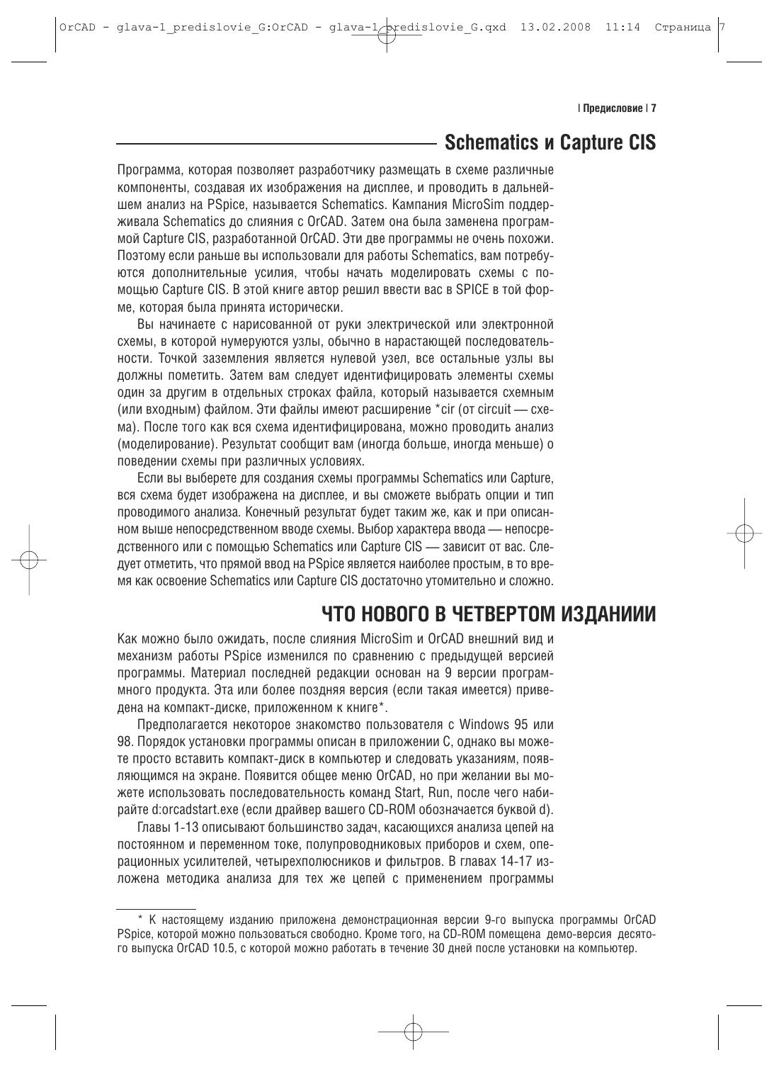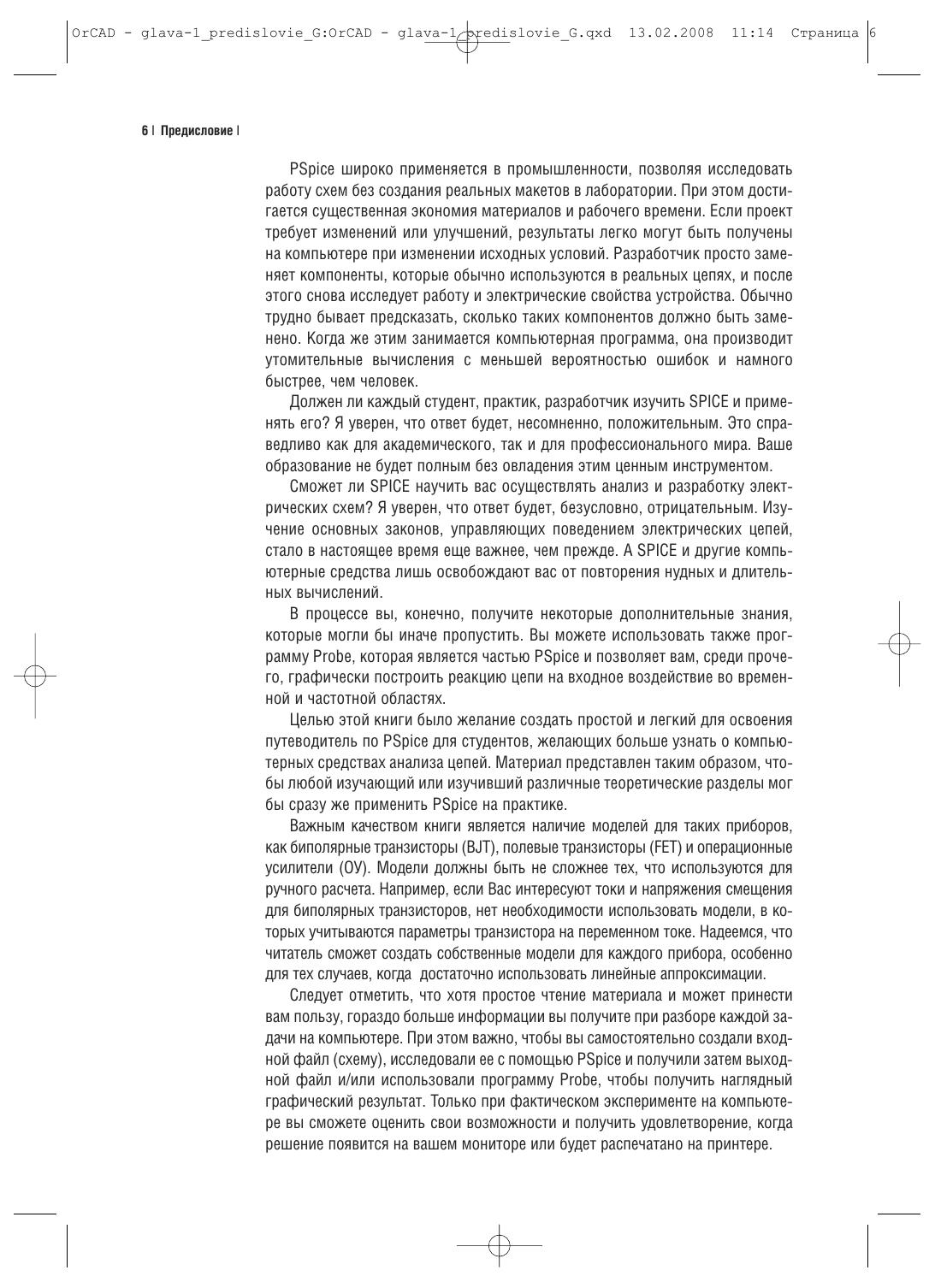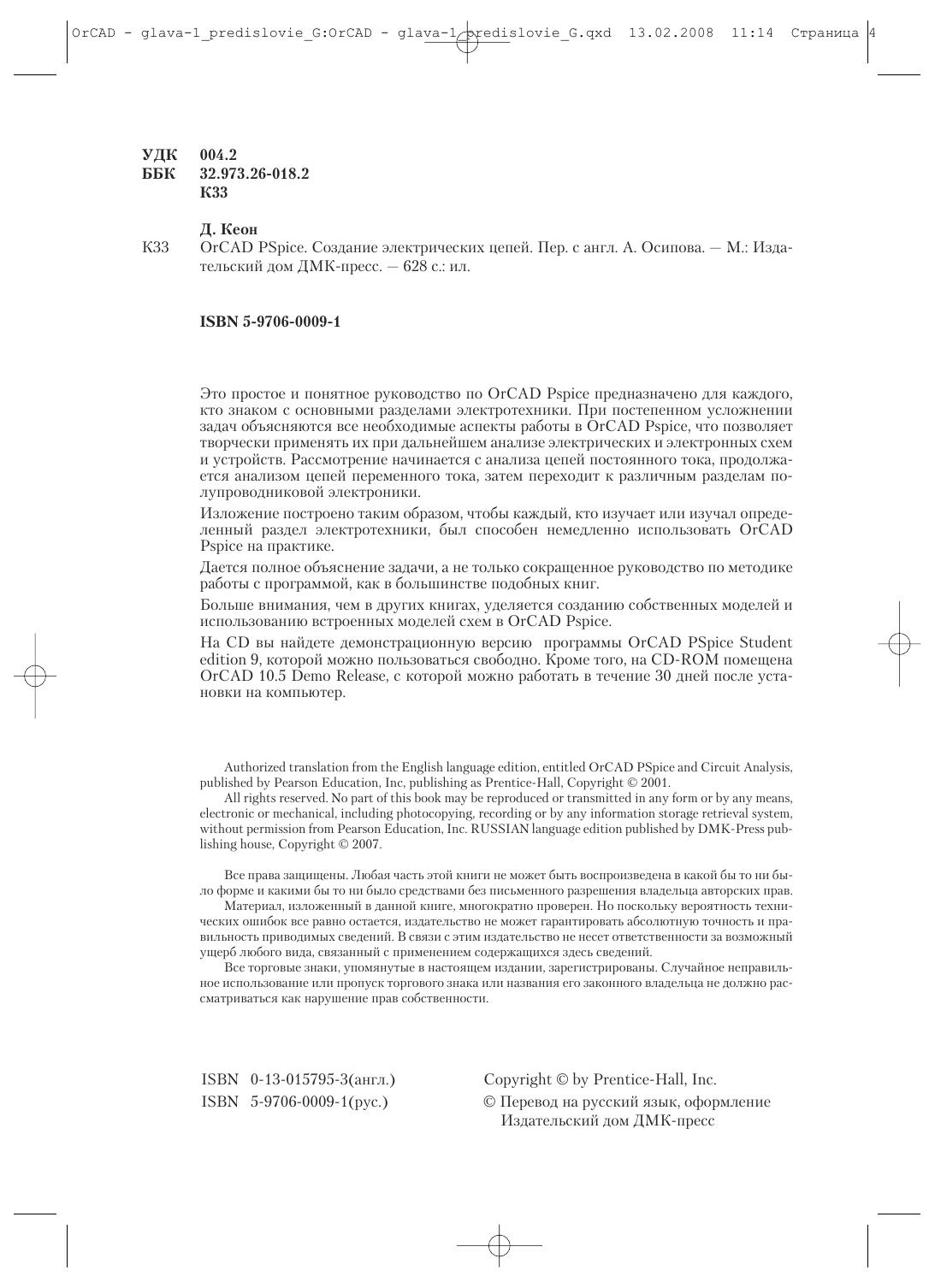 Это простое и понятное руководство по OrCAD Pspice предназначено для каждого, кто знаком с основными разделами электротехники. При постепенном усложнении задач объясняются все необходимые аспекты работы в OrCAD Pspice, что позволяет творчески применять их при дальнейшем анализе электрических и электронных схем и устройств. Рассмотрение начинается с анализа цепей постоянного тока, продолжается анализом цепей переменного тока, затем переходит к различным разделам полупроводниковой электроники. Изложение построено таким образом, чтобы каждый, кто изучает или изучал определенный раздел электротехники, был способен немедленно использовать OrCAD Pspice на практике. Дается полное объяснение задачи, а не только сокращенное руководство по методике работы с программой, как в большинстве подобных книг. Больше внимания, чем в других книгах, уделяется созданию собственных моделей и использованию встроенных моделей схем в OrCAD Pspice.