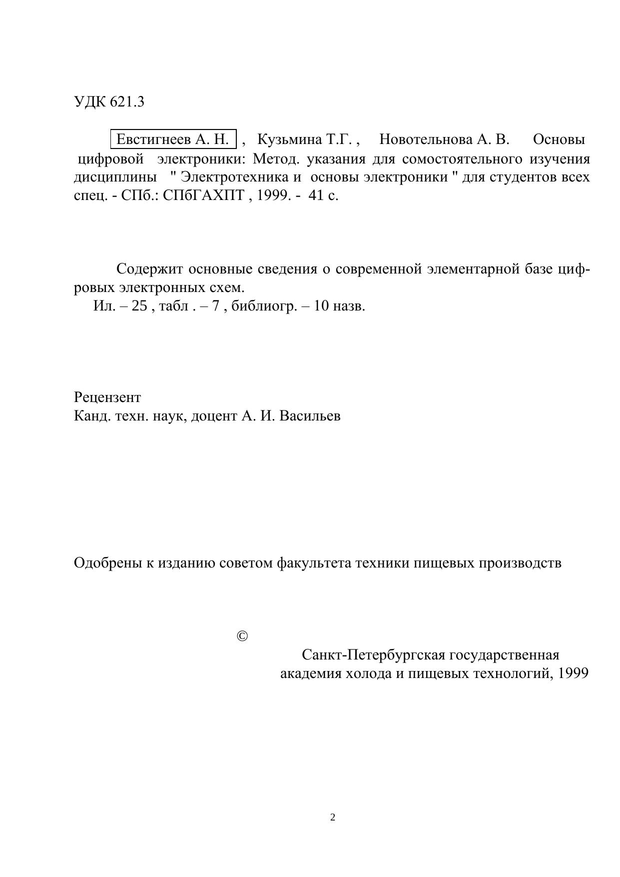 Основы цифровой электроники: Метод. указания для сомостоятельного изучения дисциплины '' Электротехника и основы электроники '' для студентов всех специальностей