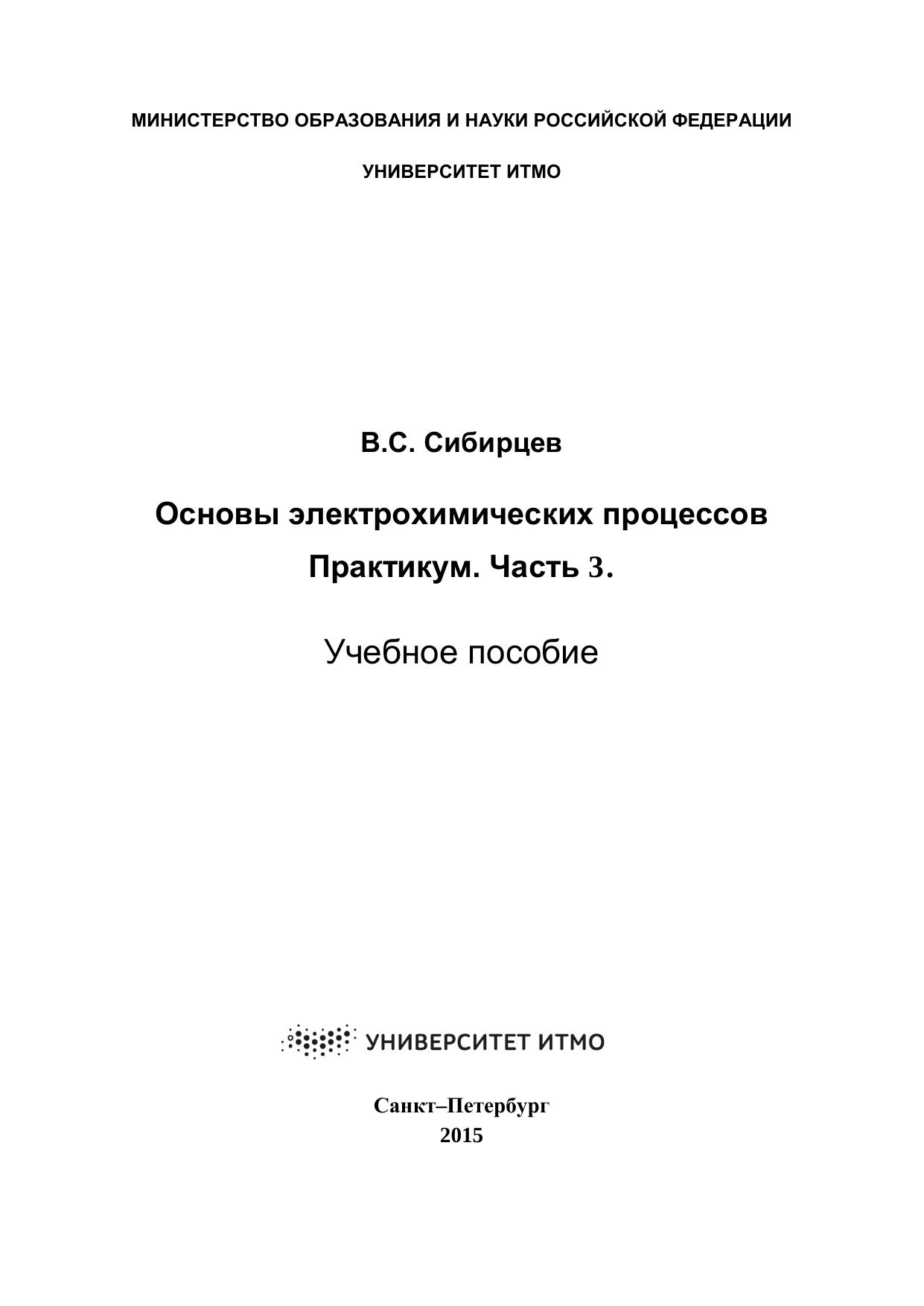 Основы электрохимических процессов. Практикум. Часть 3