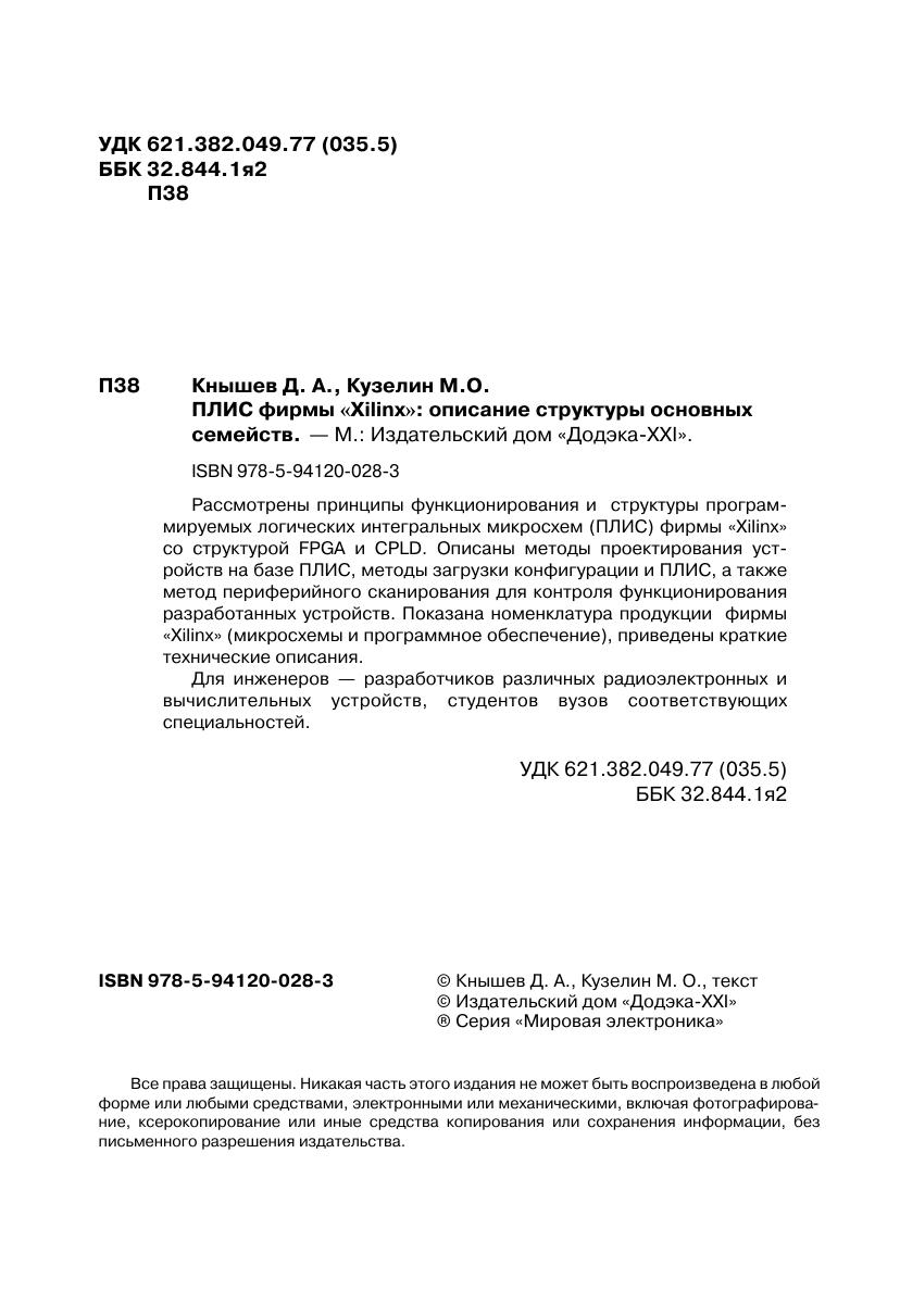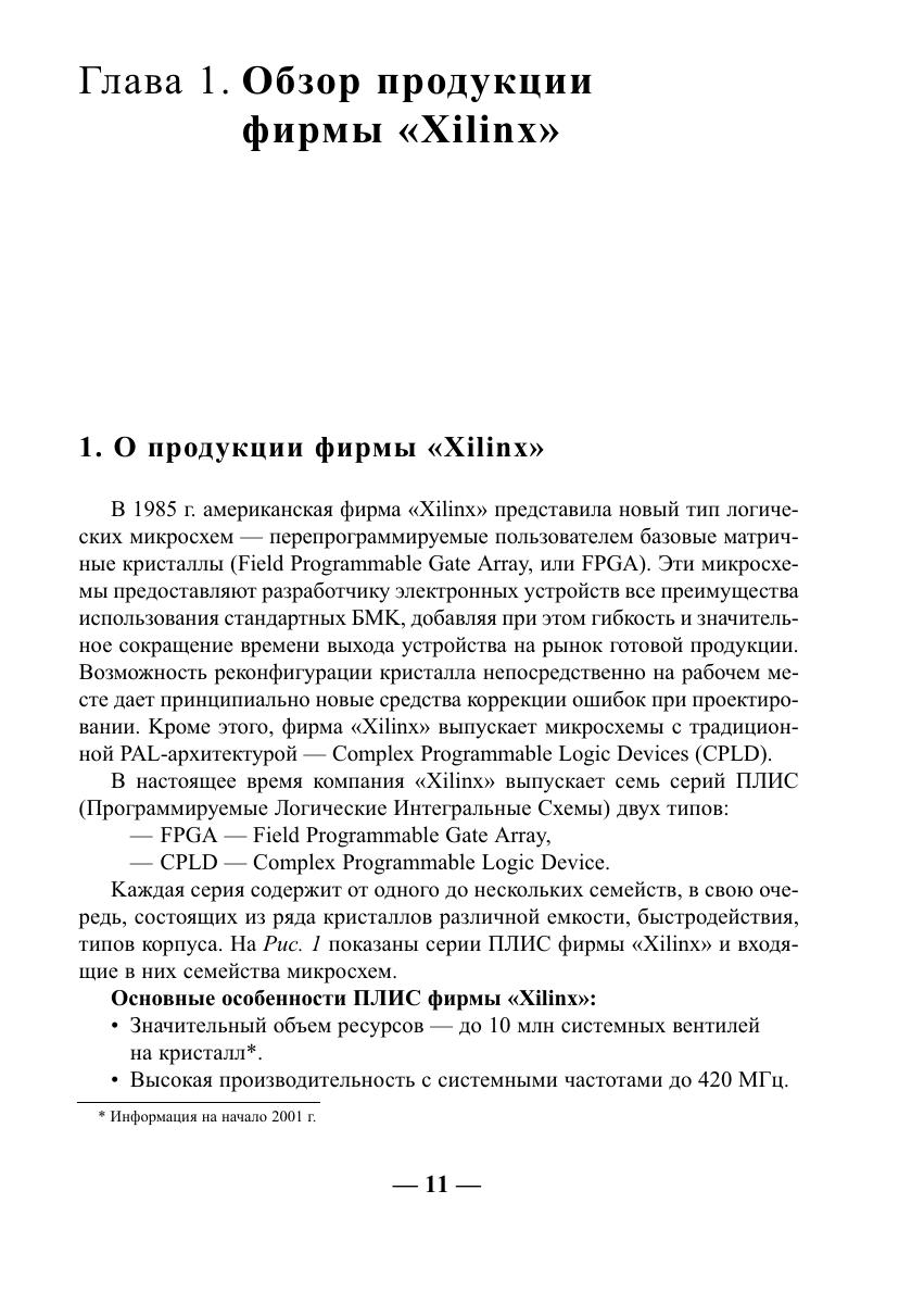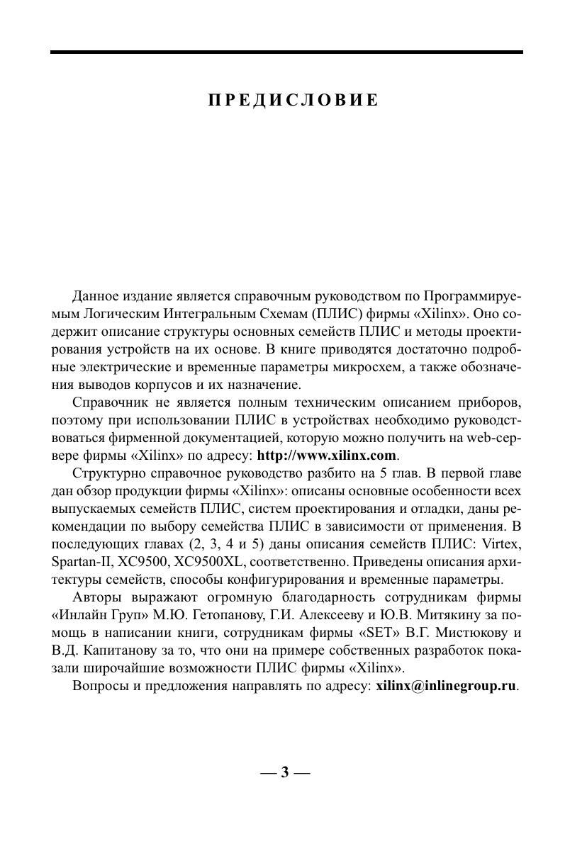Рассмотрены принципы функционирования и структуры программируемых логических интегральных микросхем (ПЛИС) фирмы «Xilinx» со структурой FPGA и CPLD. Описаны методы проектирования устройств на базе ПЛИС, методы загрузки конфигурации и ПЛИС, а также метод периферийного сканирования для контроля функционирования разработанных устройств. Показана номенклатура продукции фирмы «Xilinx» (микросхемы и программное обеспечение), приведены краткие технические описания. Для инженеров — разработчиков различных радиоэлектронных и вычислительных устройств, студентов вузов соответствующих специальностей.