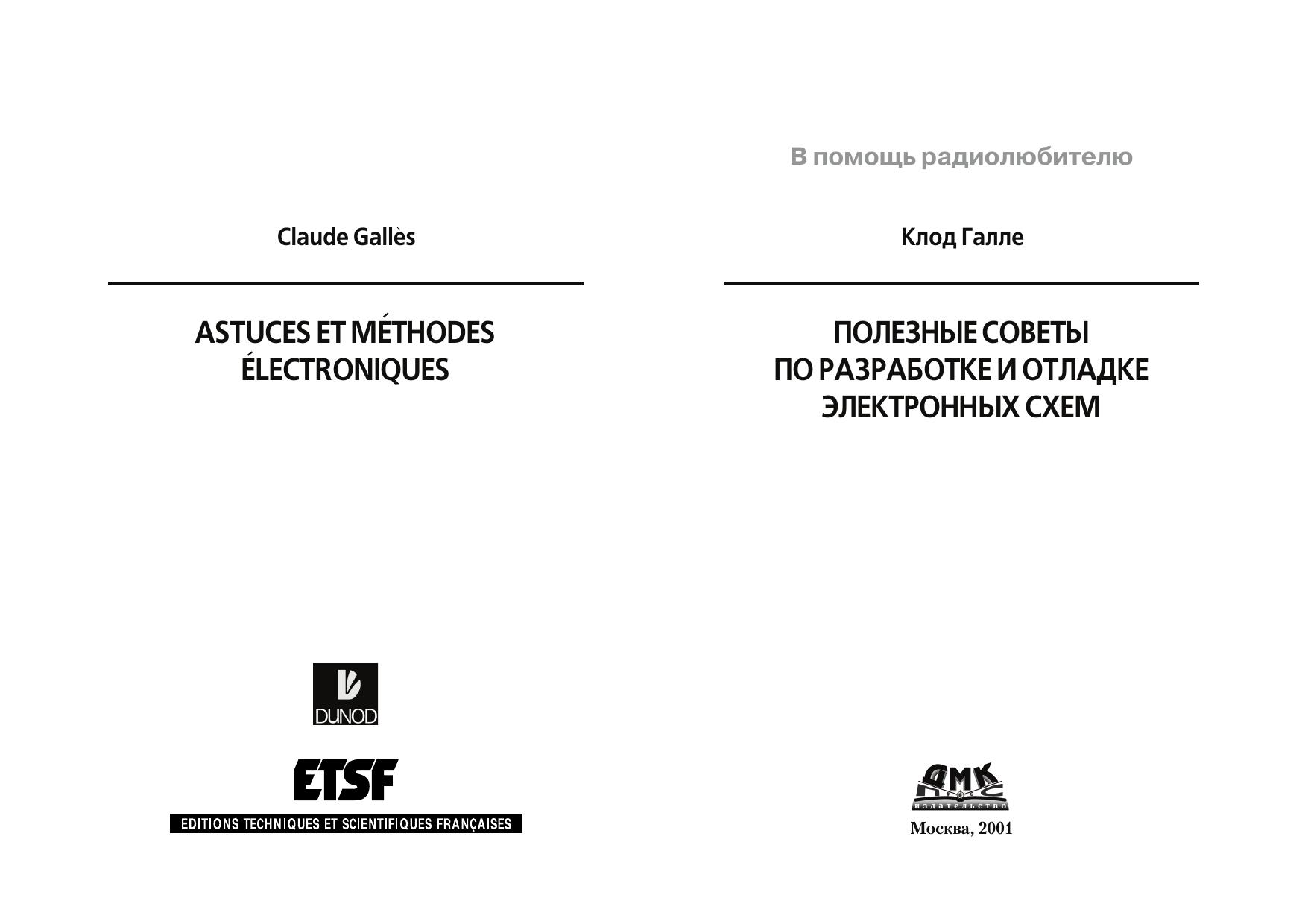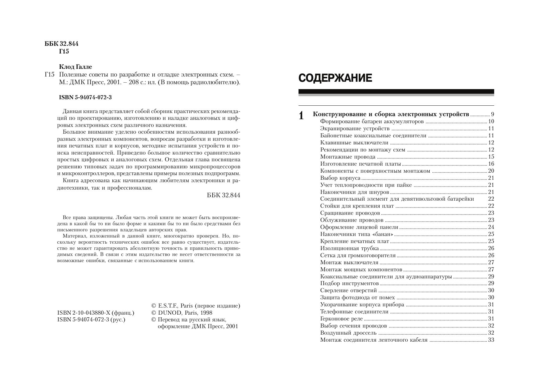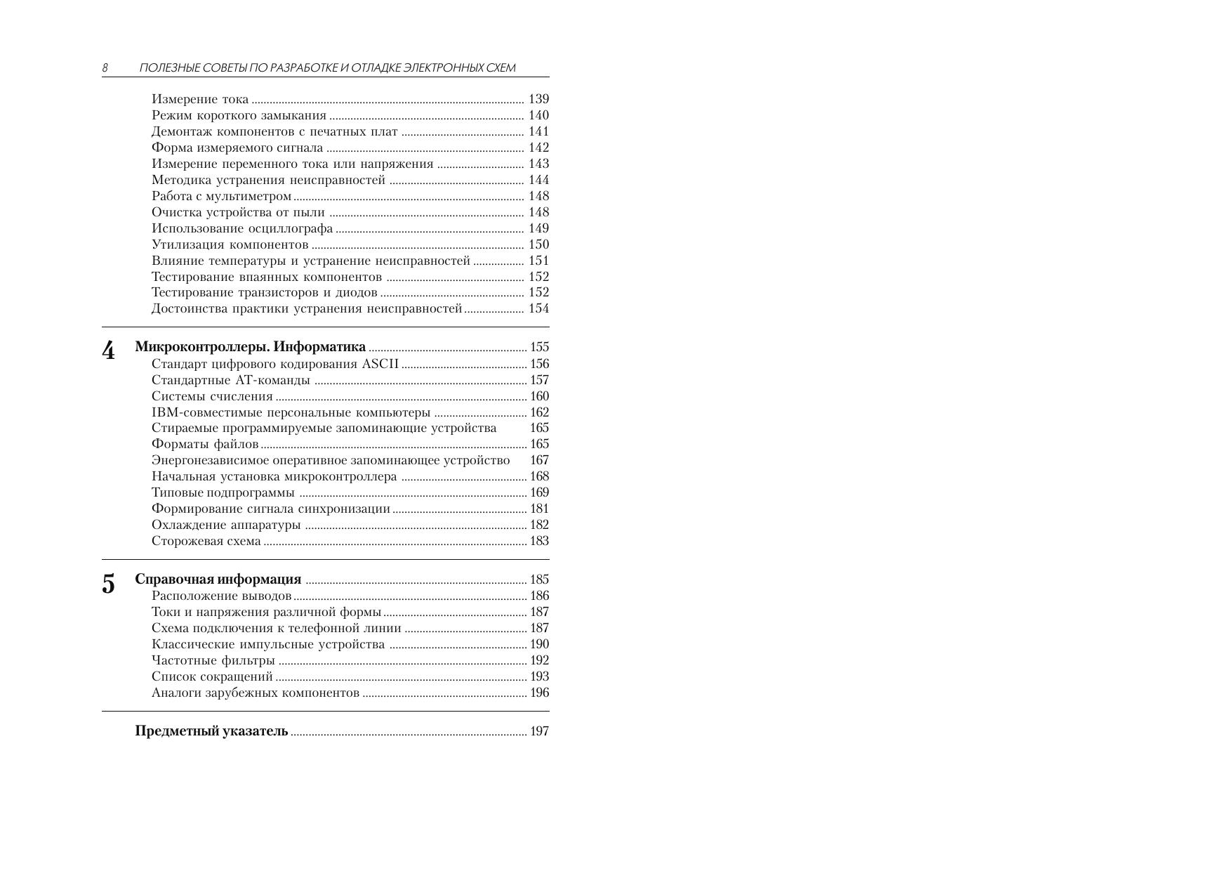 Данная книга представляет собой сборник практических рекомендаций по проектированию, изготовлению и наладке аналоговых и цифровых электронных схем различного назначения. Большое внимание уделено особенностям использования разнообразных электронных компонентов, вопросам разработки и изготовления печатных плат и корпусов, методике испытания устройств и поиска неисправностей. Приведено большое количество сравнительно простых цифровых и аналоговых схем. Отдельная глава посвящена решению типовых задач по программированию микропроцессоров и микроконтроллеров, представлены примеры полезных подпрограмм. Книга адресована как начинающим любителям электроники и радиотехники, так и профессионалам.