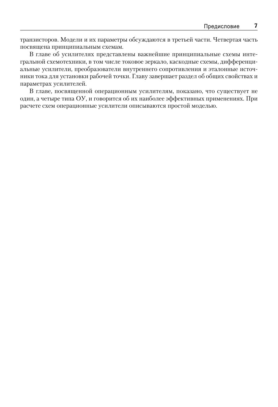 Книга Ульриха Титце и Кристофа Шенка «Полупроводниковая схемотехника» представляет собой фундаментальный труд, объединяющий принципы устройства полупроводниковых элементов (диоды, биполярные и полевые транзисторы, интегральные микросхемы) и основы создания из этих элементов различных функциональных узлов аналоговой техники (усилители, модуляторы, фильтры, радиоприемники) и цифровой (спусковые схемы, счетчики, регистры, шифраторы и дешифраторы, устройства памяти и т.д.). Книга разбита на два тома: первый посвящен основам схемотехники, второй – применениям функциональных узлов при создании более сложных устройств. При изложении материала широко используются эквивалентные схемы как полупроводниковых элементов, так и функциональных узлов, соответствующие их работе в области постоянного и переменного тока. Особое внимание уделено также переходным процессам цифровых схем. Описание каждого элемента или схемы сопровождается необходимым количеством достаточно элементарных формул, служащих для их инженерного расчета. Энциклопедическая полнота, обилие самых разных схем и доступное математическое обоснование делают книгу полезной широкому кругу читателей: радиолюбителям, инженерам радиотехники и электроники и научным работникам.