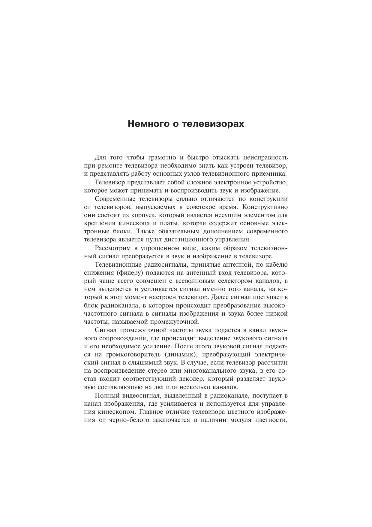 Книга предназначена для широкого круга читателей, профессионально занимающихся ремонтом бытовой электронной техники, она может быть полезна тем, кто хочет сам освоить ремонт аппаратуры, находящейся в домашнем пользовании, но не имеет достаточного опыта в этом деле.Автор делится своими секретами ремонта и маленькими хитростями, применяемыми многими мастерами в ремонтной практике.