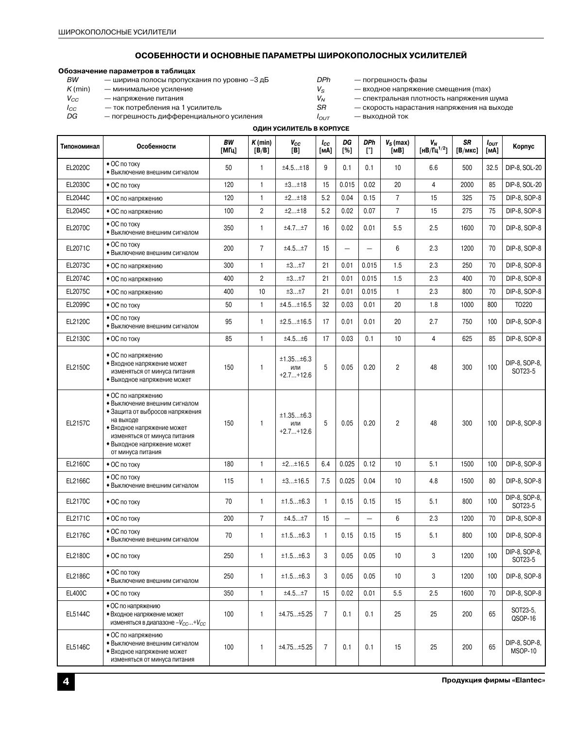 Продукция фирмы Elantec