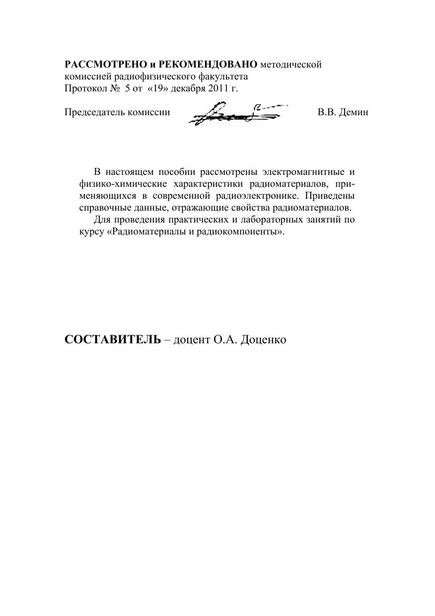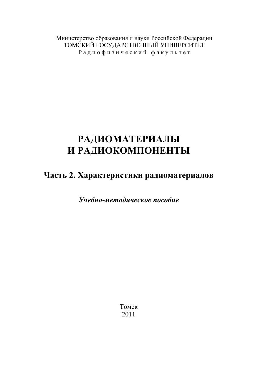 В настоящем пособии рассмотрены электромагнитные и физико-химические характеристики радиоматериалов, применяющихся в современной радиоэлектронике. Приведены справочные данные, отражающие свойства радиоматериалов. Для проведения практических и лабораторных занятий по курсу «Радиоматериалы и радиокомпоненты».