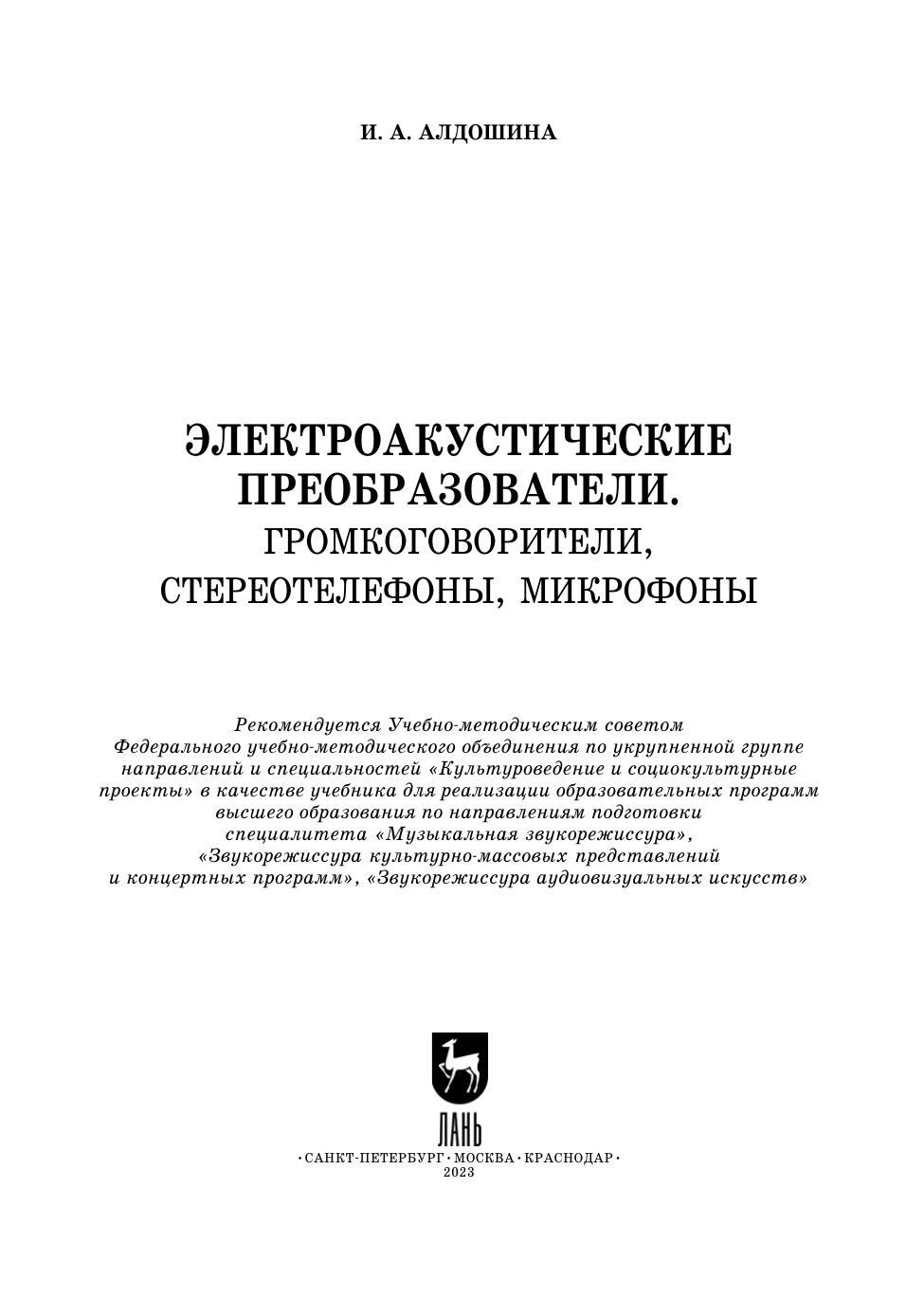 Данная книга предназначена в качестве учебника для студентов вузов, обучающихся по специальностям «Музыкальная звукорежиссура», «Звукорежиссура культурно-массовых представлений и концертных программ», «Звукорежиссура аудиовизуальных искусств». Она может быть использована как при подготовке аудиоинженеров, так и при практической работе специалистов, имеющих дело с акустикой и всеми видами электроакустической аппаратуры. Книга создана на основе анализа современных исследований ведущих мировых фирм и университетов, проведенных за последние десятилетия и отраженных в многочисленных публикациях. В книге содержатся три главы, включающие в себя список контрольных вопросов и литературу: глава 1 «Акустические системы и громкоговорители», глава 2 «Стереотелефоны», глава 3 «Микрофоны».