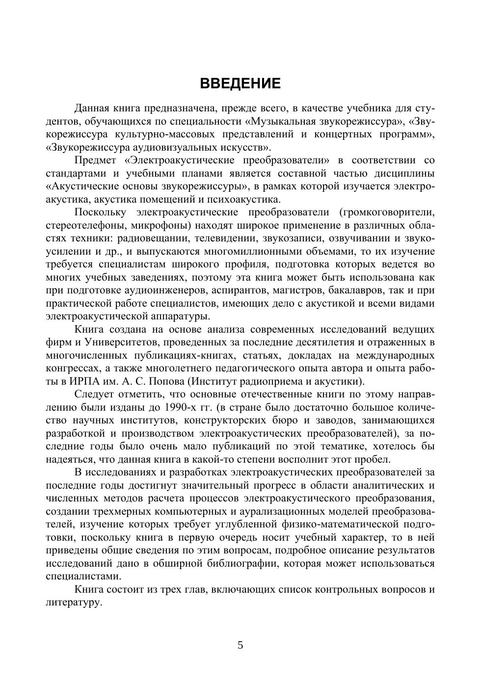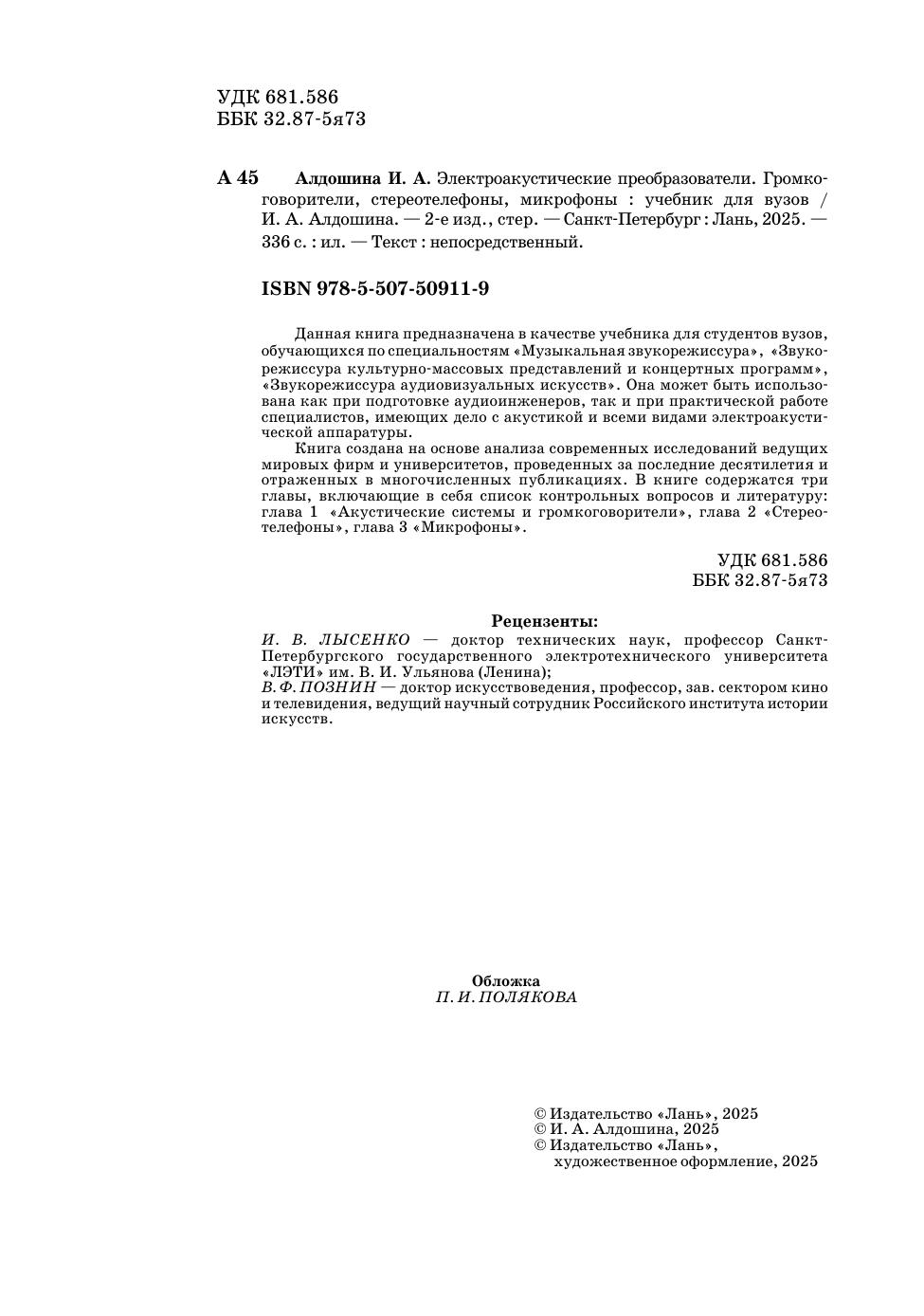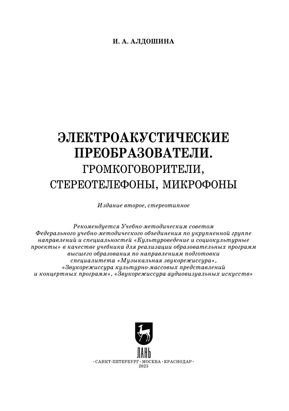 Данная книга предназначена в качестве учебника для студентов вузов, обучающихся по специальностям «Музыкальная звукорежиссура», «Звукорежиссура культурно-массовых представлений и концертных программ», «Звукорежиссура аудиовизуальных искусств». Она может быть использована как при подготовке аудиоинженеров, так и при практической работе специалистов, имеющих дело с акустикой и всеми видами электроакустической аппаратуры. Книга создана на основе анализа современных исследований ведущих мировых фирм и университетов, проведенных за последние десятилетия и отраженных в многочисленных публикациях. В книге содержатся три главы, включающие в себя список контрольных вопросов и литературу: глава 1 «Акустические системы и громкоговорители», глава 2 «Стереотелефоны», глава 3 «Микрофоны».