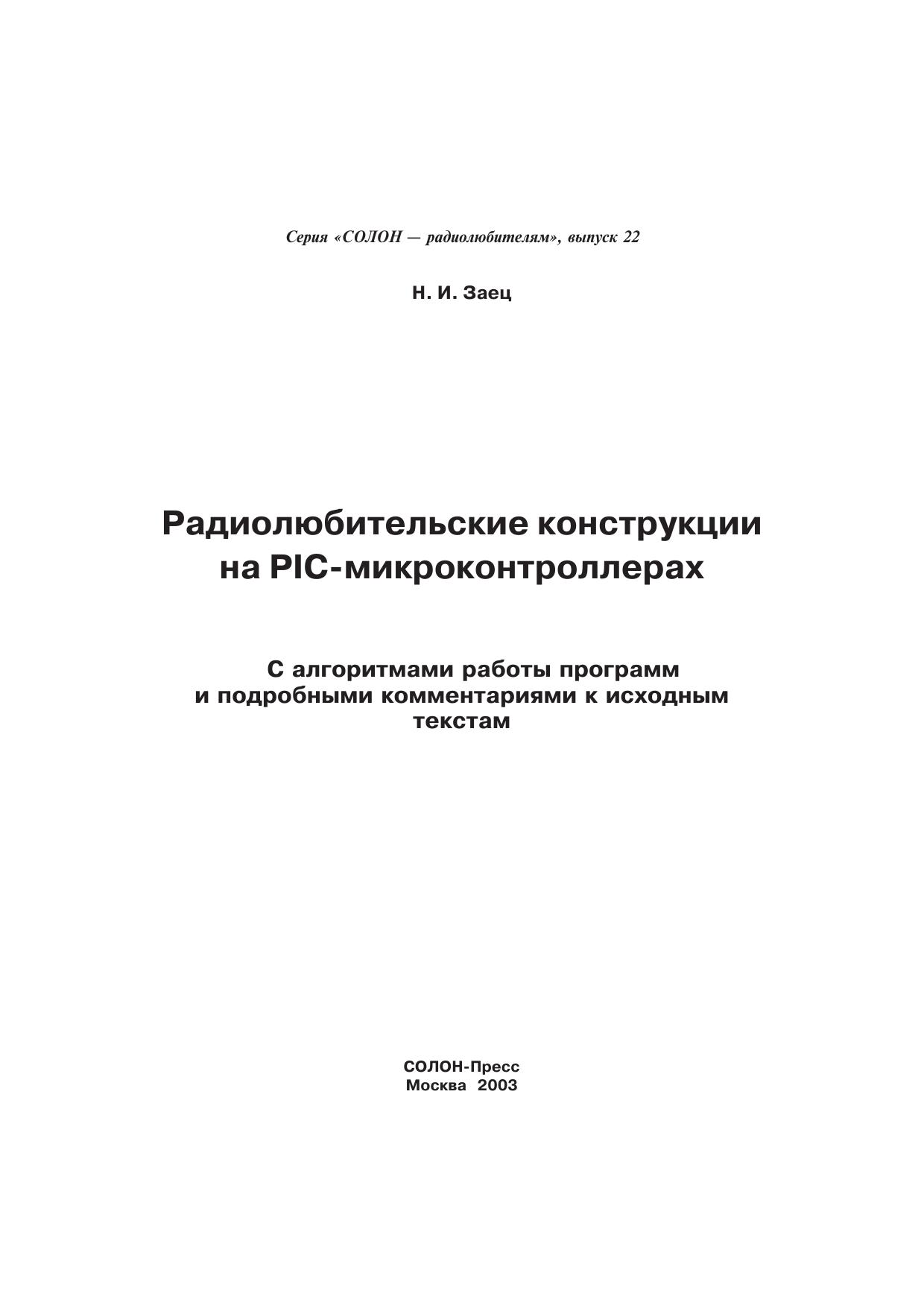 Книга 22. Радиолюбительские конструкции на PIC-микроконтроллерах. С алгоритмами работы программ и подробными комментариями к исходным текстам