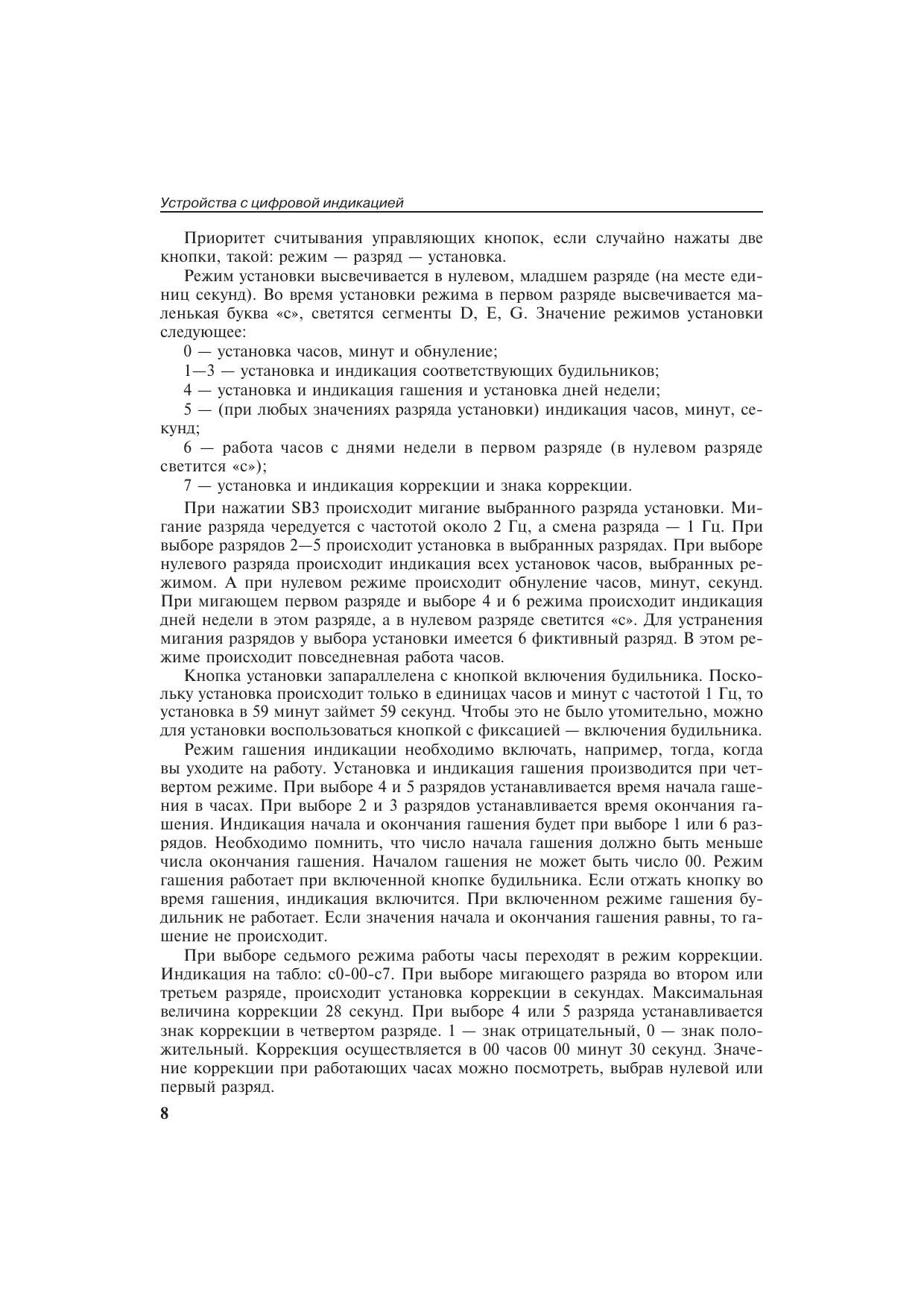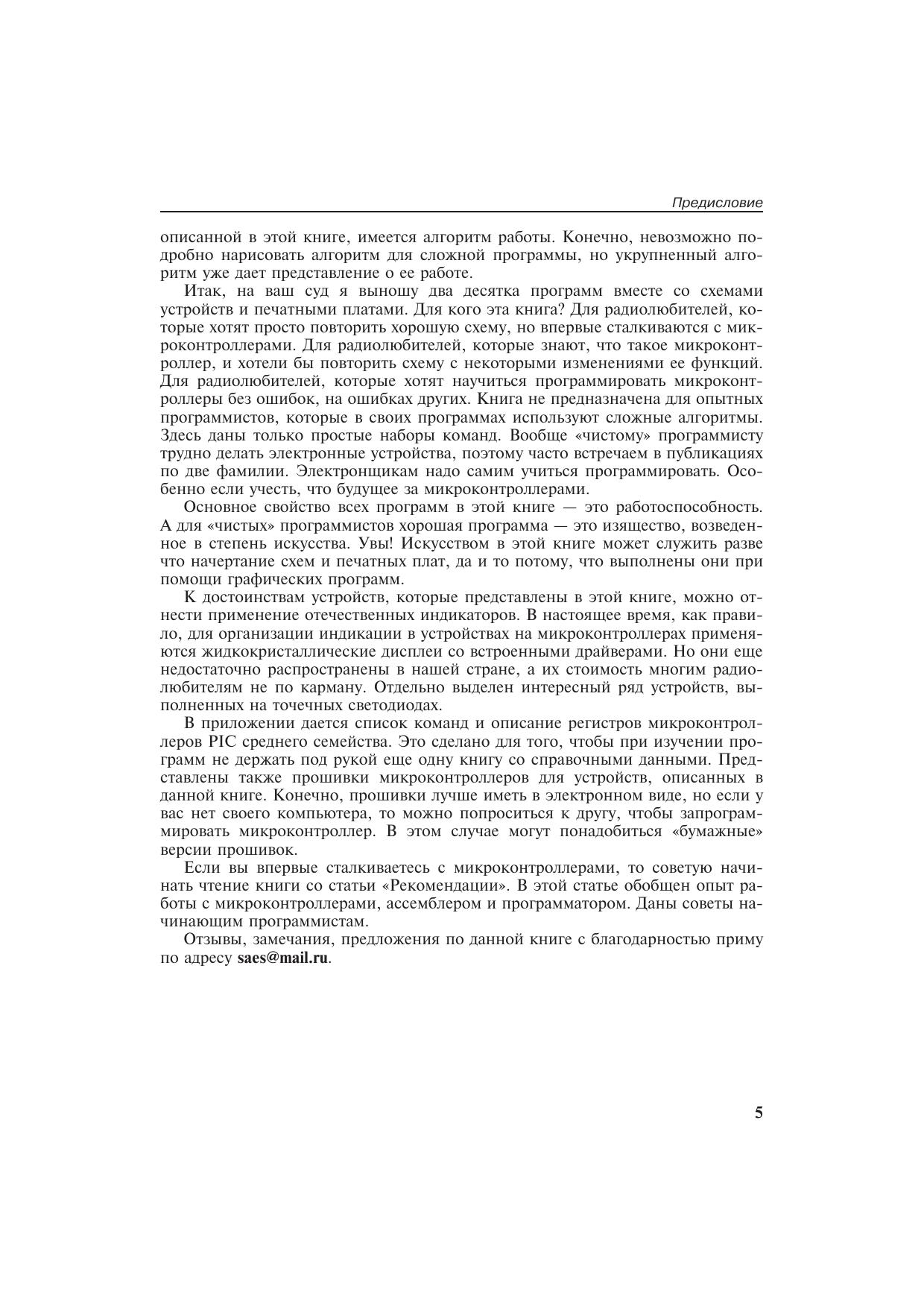 В книге представлено 20 описаний радиолюбительских устройств различного назначения: часы, таймеры, автоматы, программатор и многие другие, выполненные на микроконтроллере PIC16F84A. Впервые книга с различными устройствами на PIC-микроконтроллере предназначается для радиолюбителей с любым уровнем подготовленности. Даже те, кто не знаком с программированием микроконтроллеров, смогут без труда повторить любое устройство. Радиолюбители, имеющие опыт работы с программированием, могут изменить программы под свои цели. Для этого в книге даны алгоритмы работы и исходные тексты программ с подробными комментариями. Автор также делится опытом программирования и работы с ассемблеромMPLAB и программатором PonyProg2000. Для широкого круга радиолюбителей.